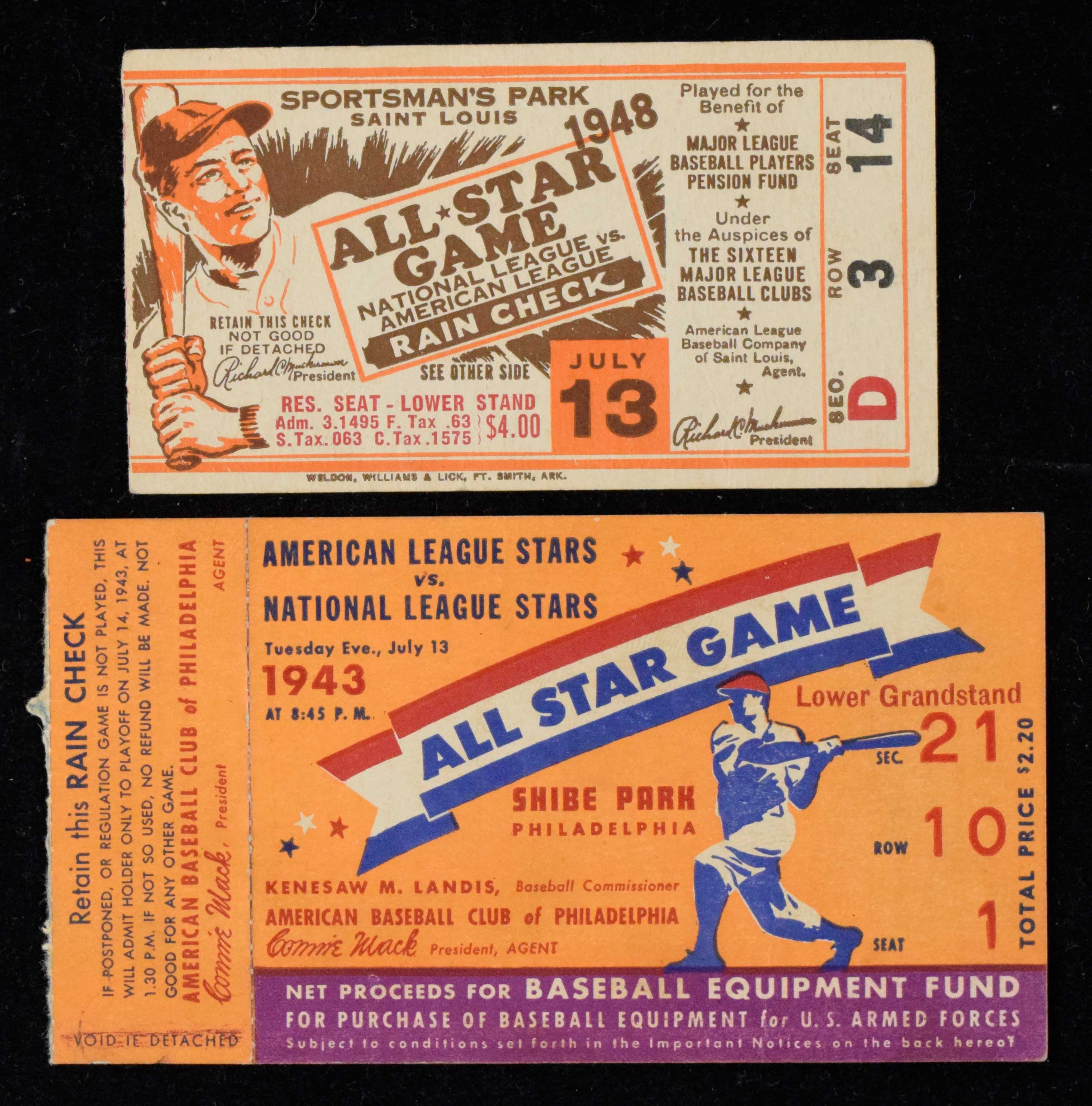 1943 and 1948 All-Star Game ticket stubs (GD-VG) Includes 1943 (VG, pencil marks on back); 1948 (GD/VG): GD-VG
