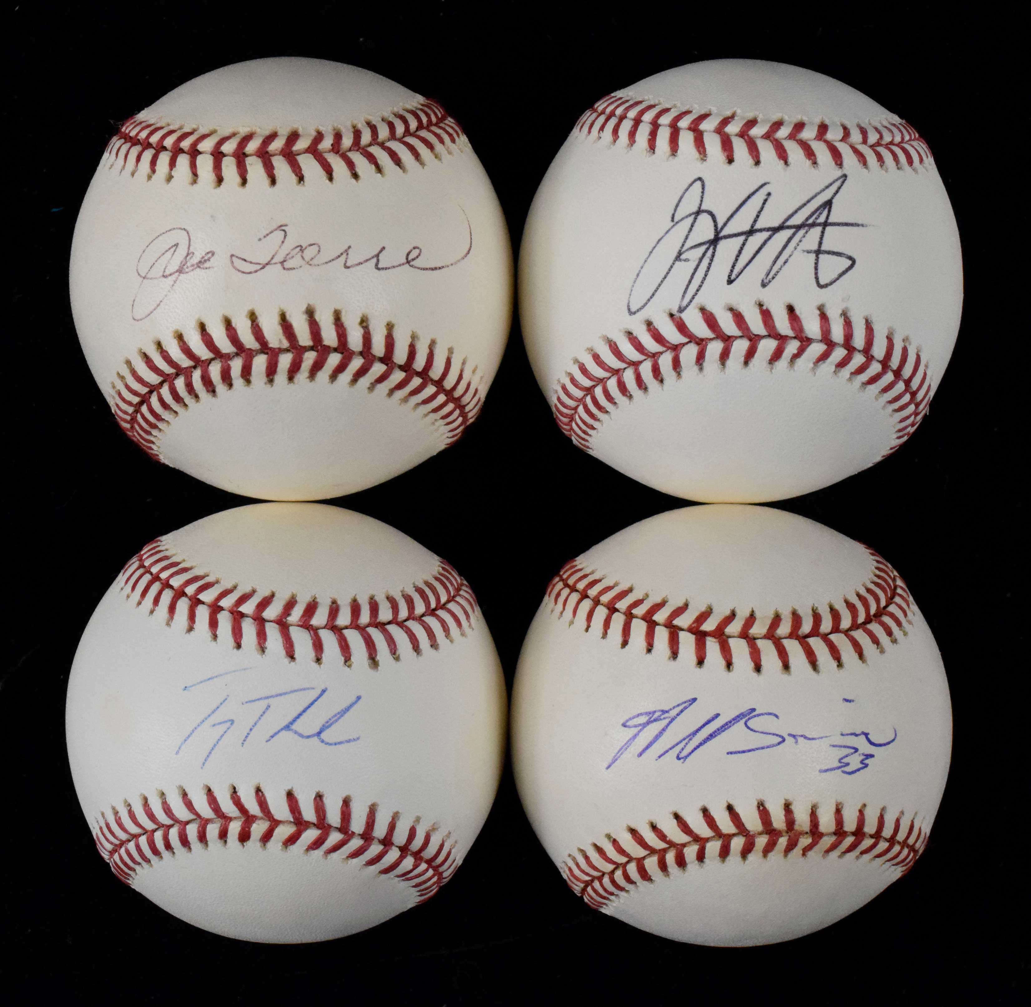 Description:Lot of (12) signed baseballs (EX-NM/MT). All are signed on official NL, AL, or MLB balls unless noted otherwise. Includes Joe Torre (JSA), Joey Votto, Troy Tulowitzki (Steiner and MLB Authenticated), Alfonso Soriano (Steiner and MLB Authenticated), Francisco Rodriguez (2002 World Series ball), Pablo Sandoval (MLB Authenticated), Justin Upton, Brian Wilson (MLB Authenticated 2010 World Series ball), Freddy Sanchez (MLB Authenticated 2010 World Series ball), Michael Morse (MLB Authenticated), Shawn Wooten (Angels logo ball), and dual-signed Willie McCovey / Brandon Crawford. Signatures rate 7 to 9/10 (avg 8) out of 10. Most balls appear to average EX/MT-NM overall. Range: EX-NM/MT