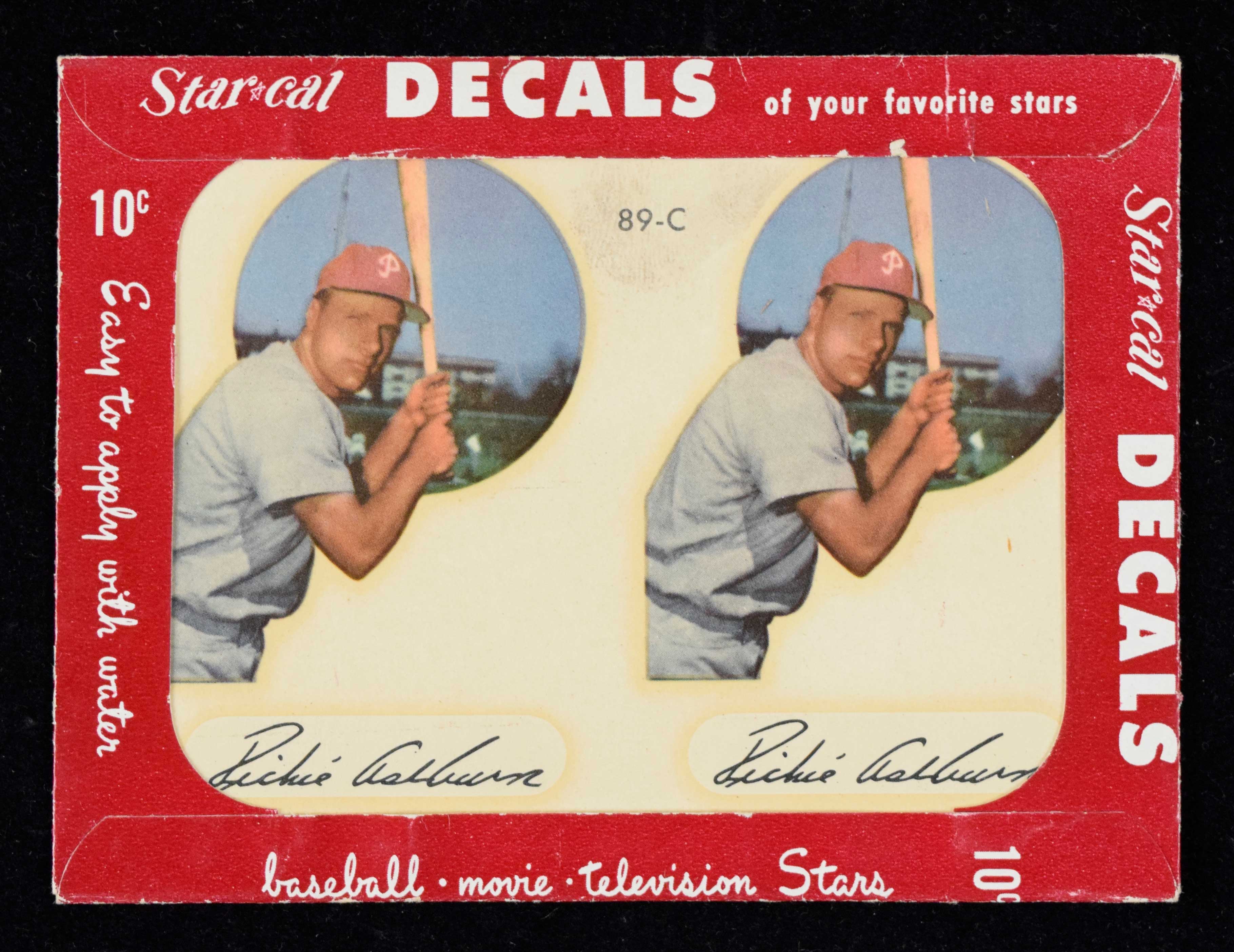 Description:1952 W625 Star-Cal Decals #89-C Richie Ashburn (VG/EX). Areas of light to moderate wear around the envelope, along with a stain at the "89-C", but minimal wear otherwise: VG/EX