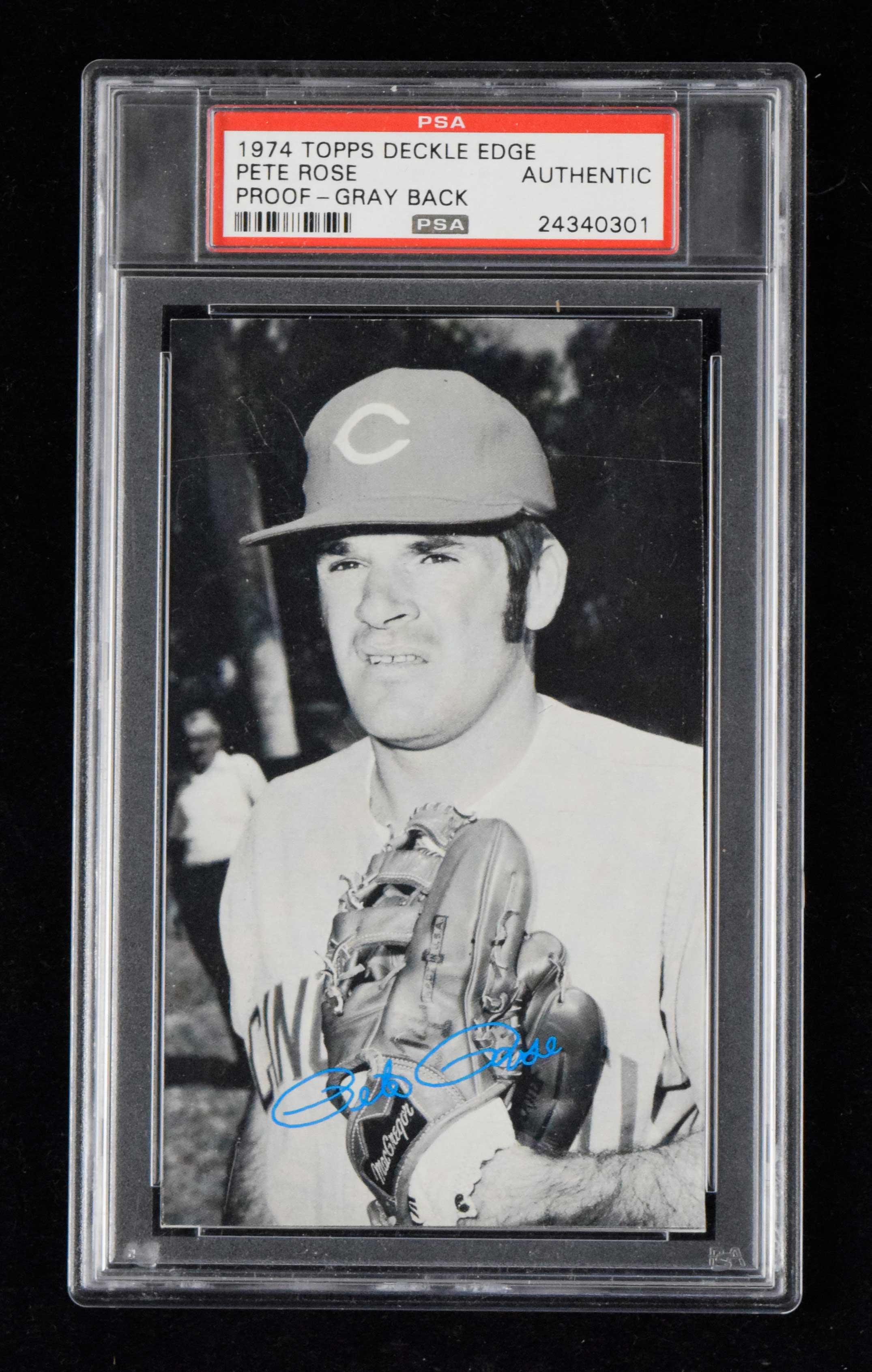 1974 Topps Deckle Edge gray back proof Pete Rose (PSA Authentic). NM appearance, with just a touch of very minor corner wear: PSA Authentic