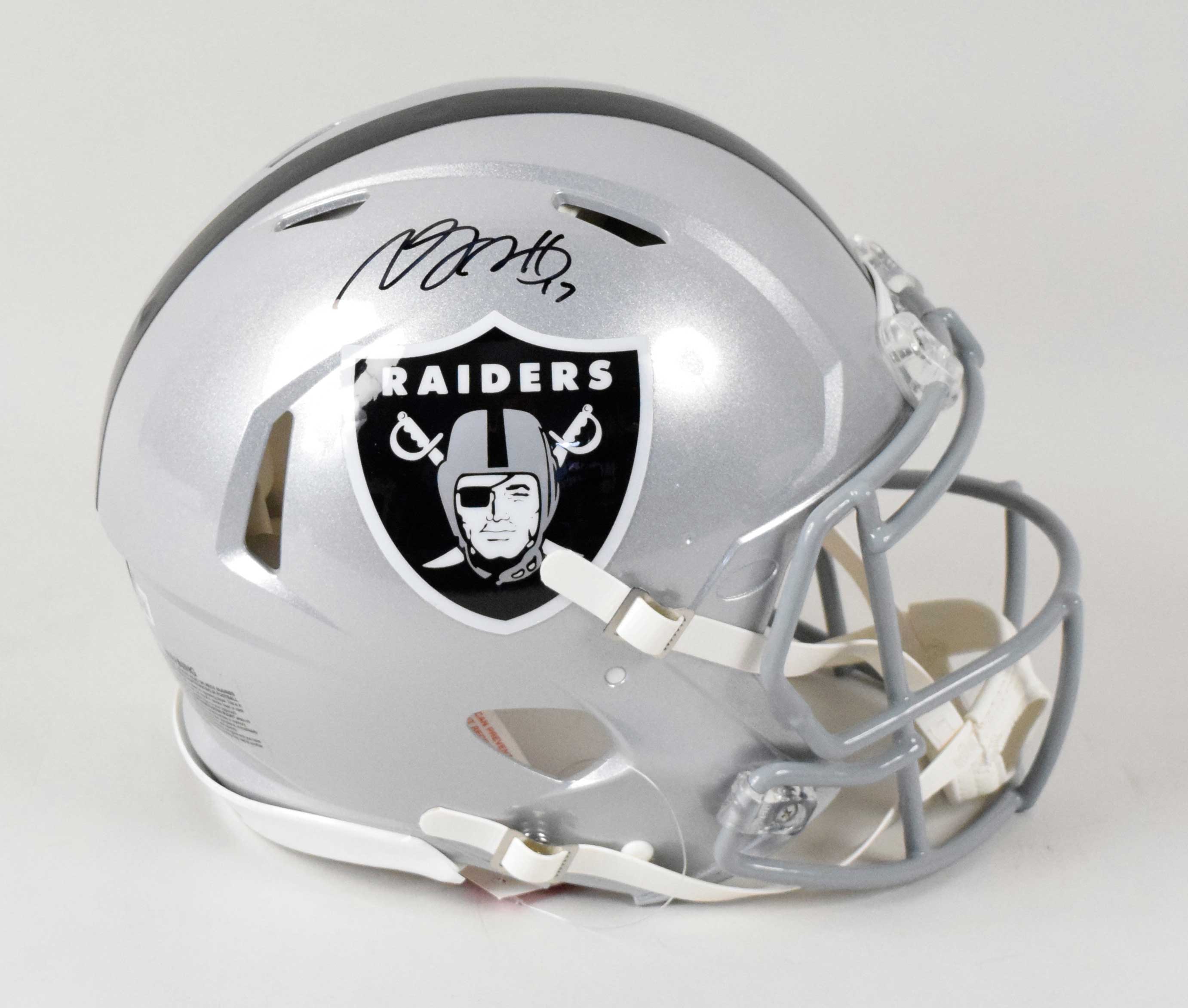 Description:Davante Adams signed Las Vegas Raiders full size Pro Line helmet - Beckett (NM). Riddell R41167 Speed Classic helmet signed by Adams in black marker. Signature rates 9 out of 10. Beckett Witnessed serial #ed hologram sticker is on the helmet: NM