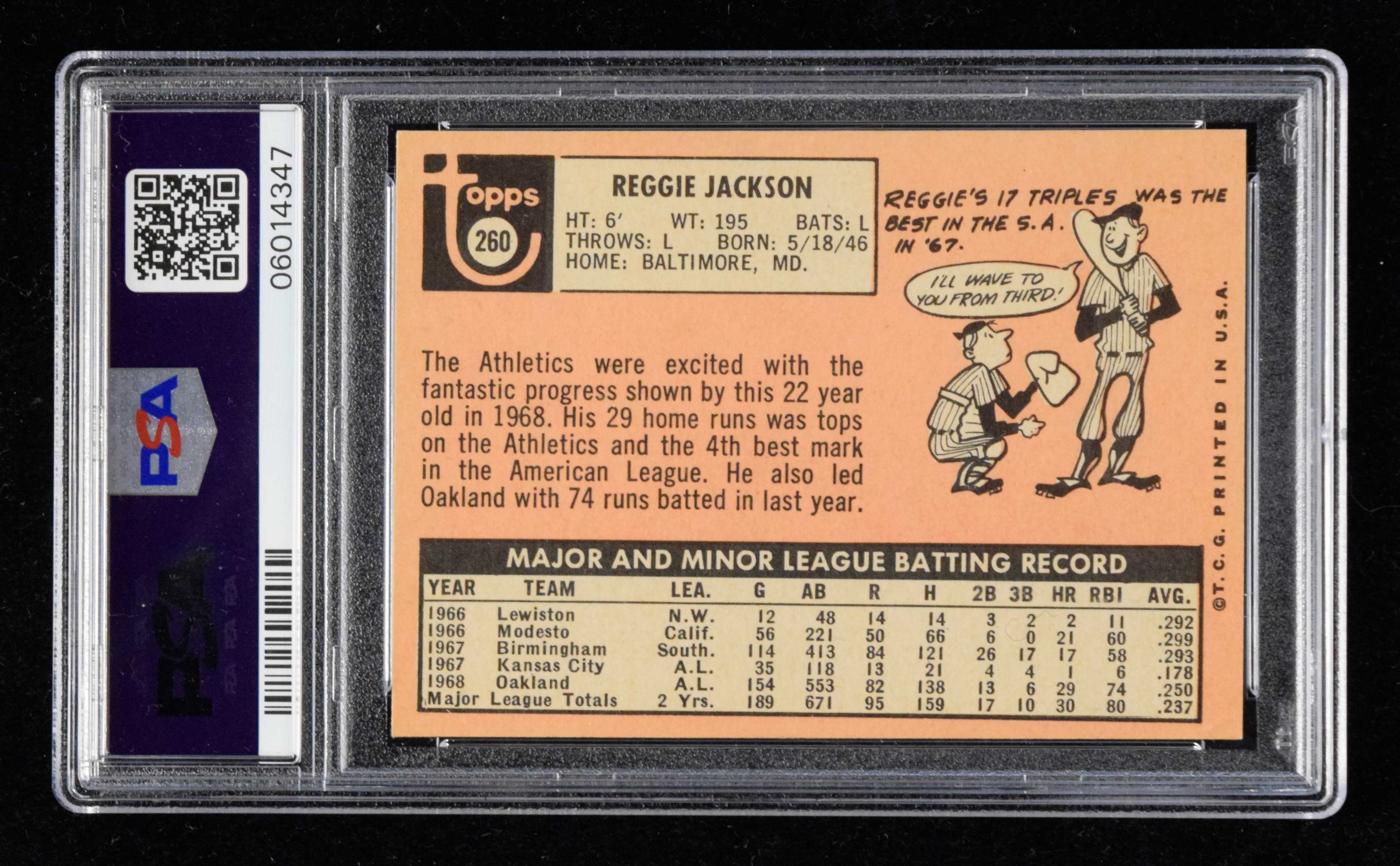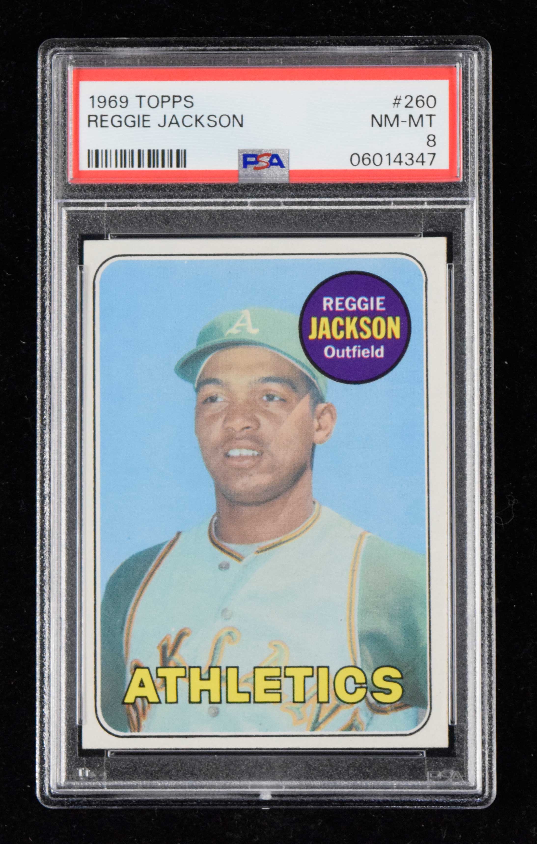 1969 Topps #260 Reggie Jackson Rookie (PSA NM-MT 8) Iconic rookie card in blazing pack fresh condition: PSA NM-MT 8 ($3,000-$4,000)