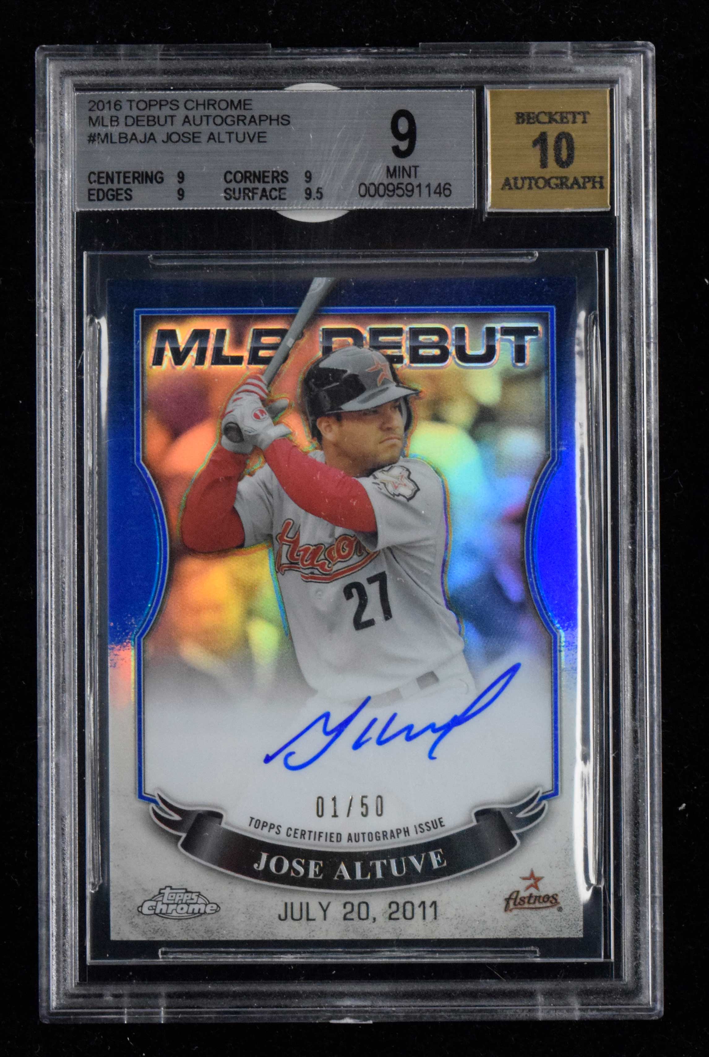 2016 Topps Chrome "MLB Debut Autographs" #MLBA-JA Jose Altuve signed insert card #ed 1/50 (Beckett 9 MT, auto graded 10).