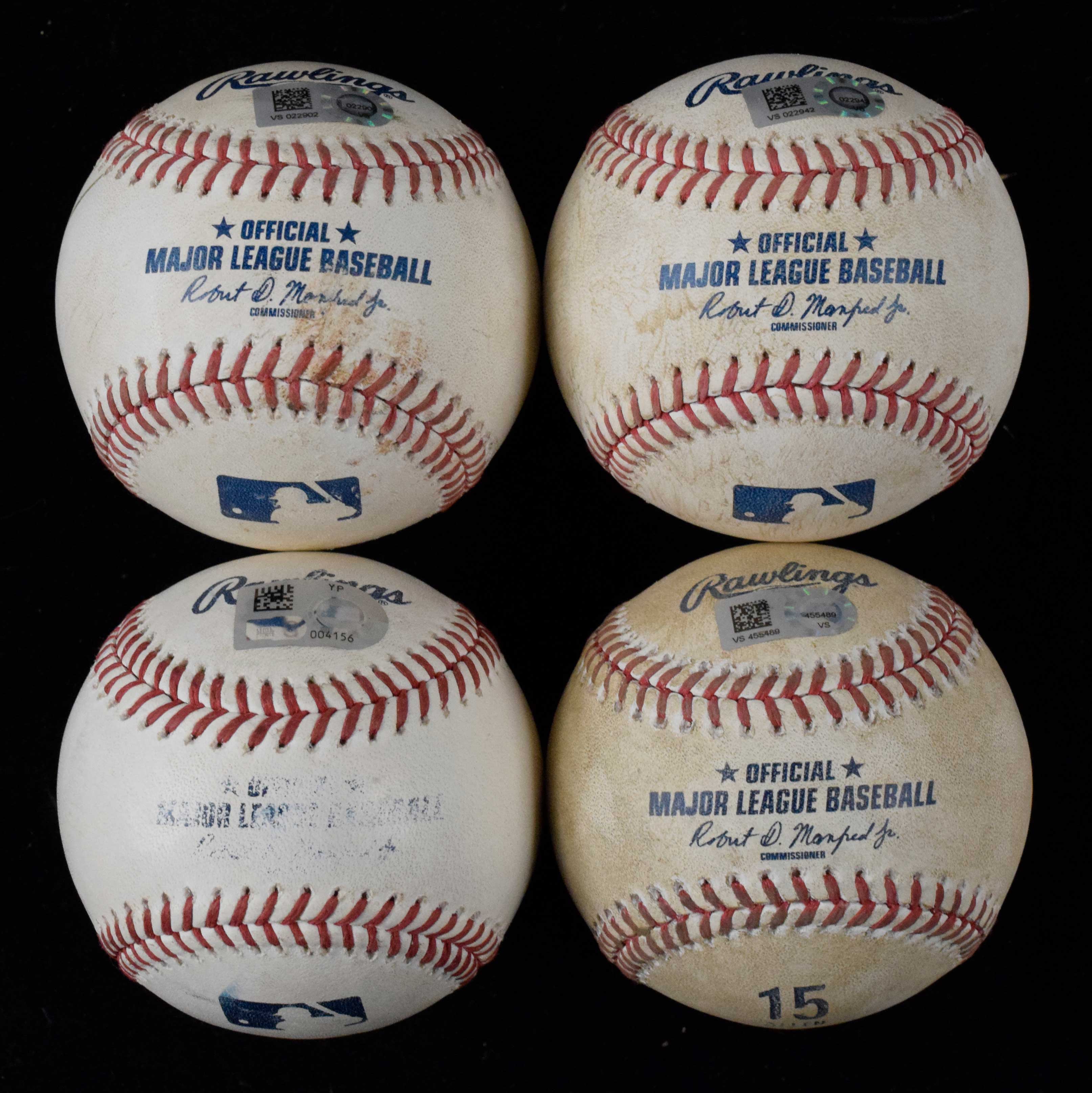 Description:Lot of (5) Philadelphia Phillies game used baseballs from 2020-2022 - MLB Authenticated (VG/EX-EX). Includes 8/5/2020 New York Yankees at Phillies ball hit by Gio Urshela for a foul ball off of Aaron Nola, 8/6/2020 Yankees at Phillies ball pitched by Zach Eflin to Tyler Wade for a ball, 8/8/2020 Atlanta Braves at Phillies ball hit by Freddie Freeman for a foul ball off of Jake Arrieta, 9/3/2020 Washington Nationals at Phillies ball pitched by Zach Eflin to Asdrubal Cabrera for a ball, and 9/6/2022 Miami Marlins at Phillies ball hit by Miguel Rojas for a foul ball off of Jose Alvarado. MLB Authenticated serial #ed hologram sticker is on each ball: VG/EX-EX