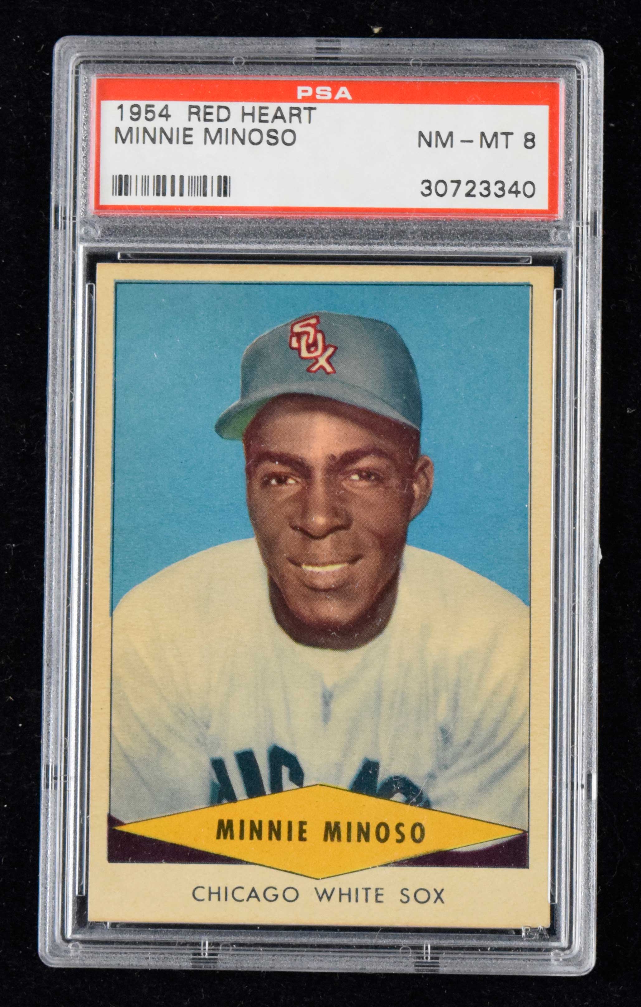 Minnie Minoso 1954 Red Heart Dog Food graded PSA 8 (NM/MT).