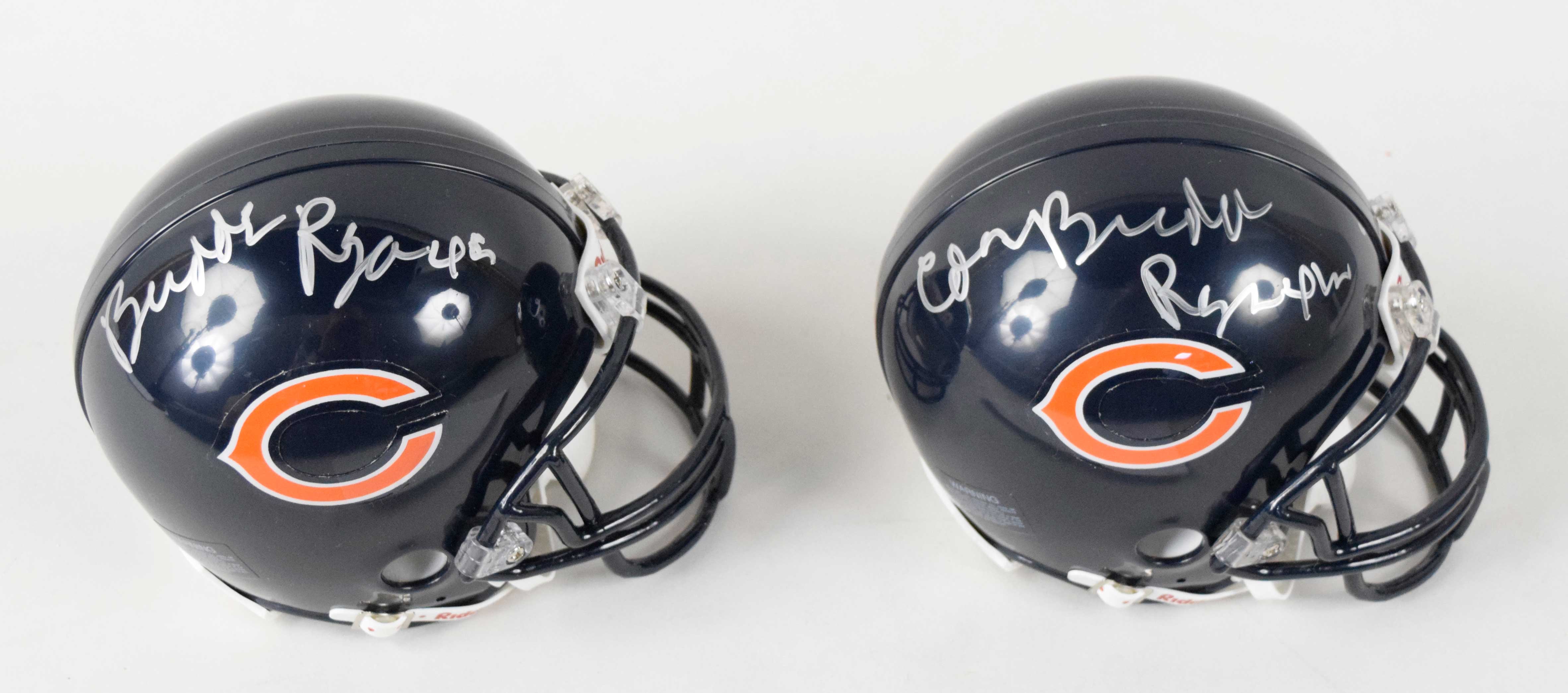 Description:Lot of (2) Buddy Ryan autographed Chicago Bears mini-helmets (Sigs. NM/MT-MT). Excellent lot of Riddell mini-helmets, each signed by the iconic defensive coach. Both are signed in silver marker, with one signed "Coach Buddy Ryan" and the other "Buddy Ryan." Signatures rate 8/9 out of 10, and helmets appear NM/MT or better.