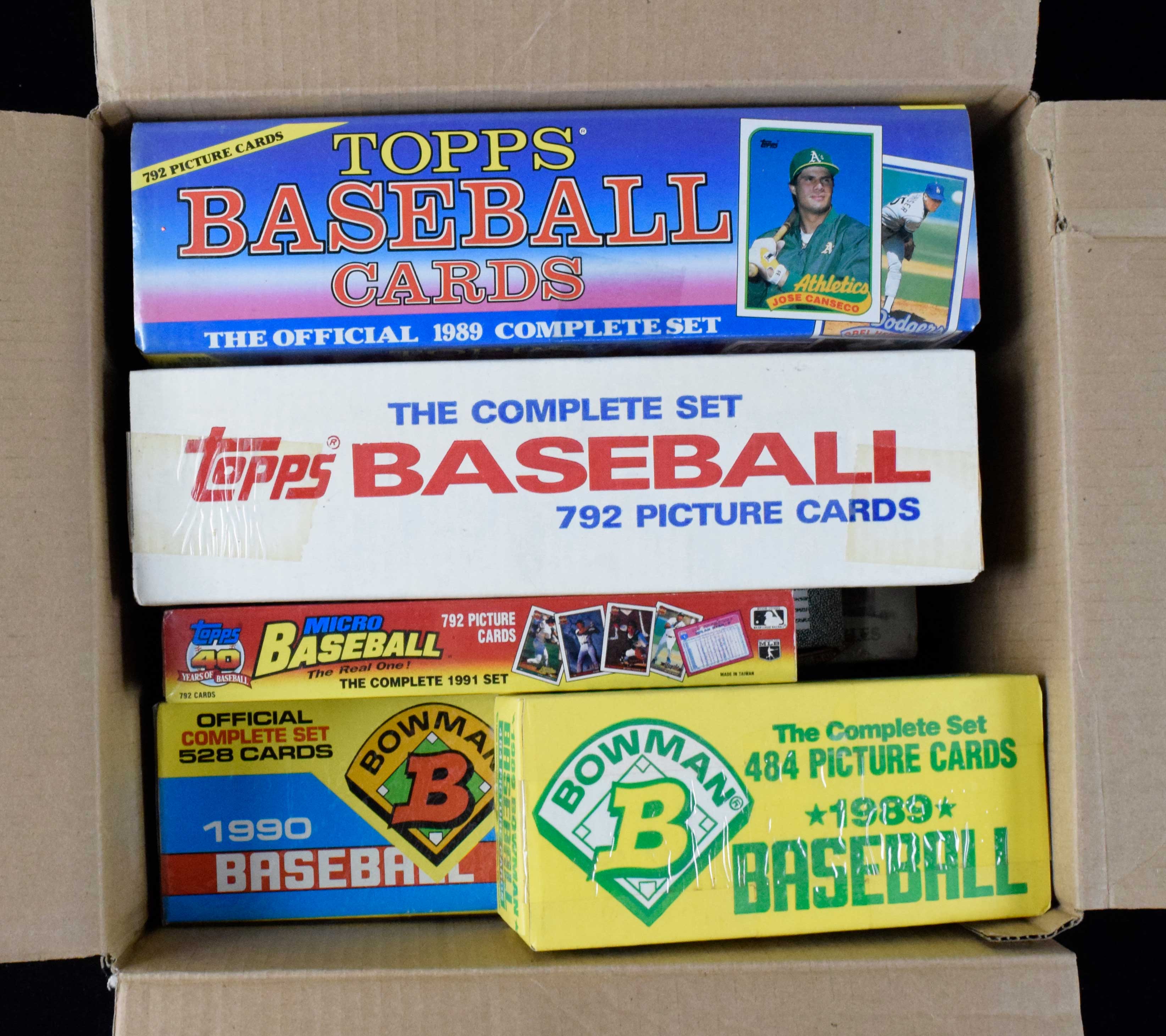 Description:Lot of (14) 1987-1992 Topps, Bowman and Donruss factory sets with most sealed (EX/MT-NM/MT). Good quantity of factory sets, with all sealed unless noted below. Includes (8) Topps, with (2) 1987 (one unsealed), (2) 1989, (1) 1991, (1) 1991 Micro, (1) 1992 and (1) 1992 Micro; (2) Donruss, with (1) 1990 and (1) 1991 and (4) Bowman, with (1) 1989 and (3) 1990. Set boxes: EX/MT-NM/MT, with cards inside presumably NM/MT-MT or better.