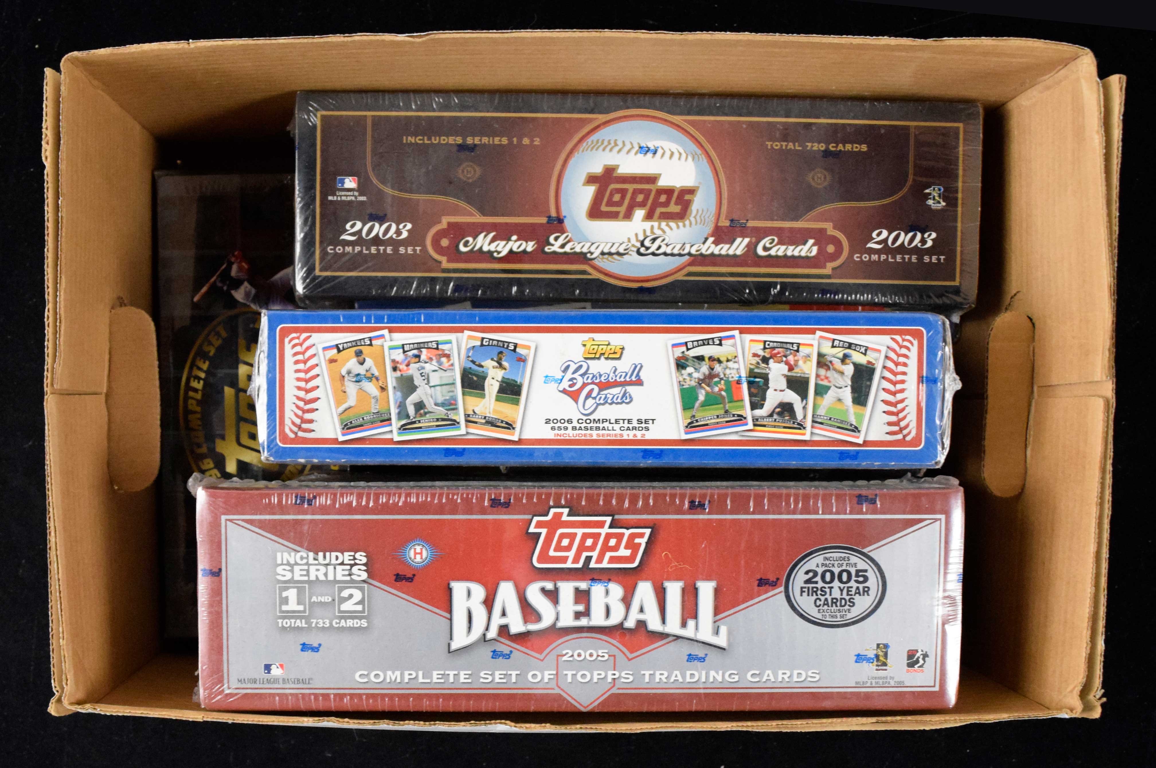 Description:Lot of (8) 1994-2006 Topps factory sets, all sealed (EX/MT-NM/MT). Excellent quantity of Topps factory sets, with each remaining in its original factory-sealed condition. Includes (1) each from 1994, 1996, 1999, 2000, 2002, 2003, 2005 and 2006. Set boxes: EX/MT-NM/MT, with cards inside presumably NM/MT-MT or better.