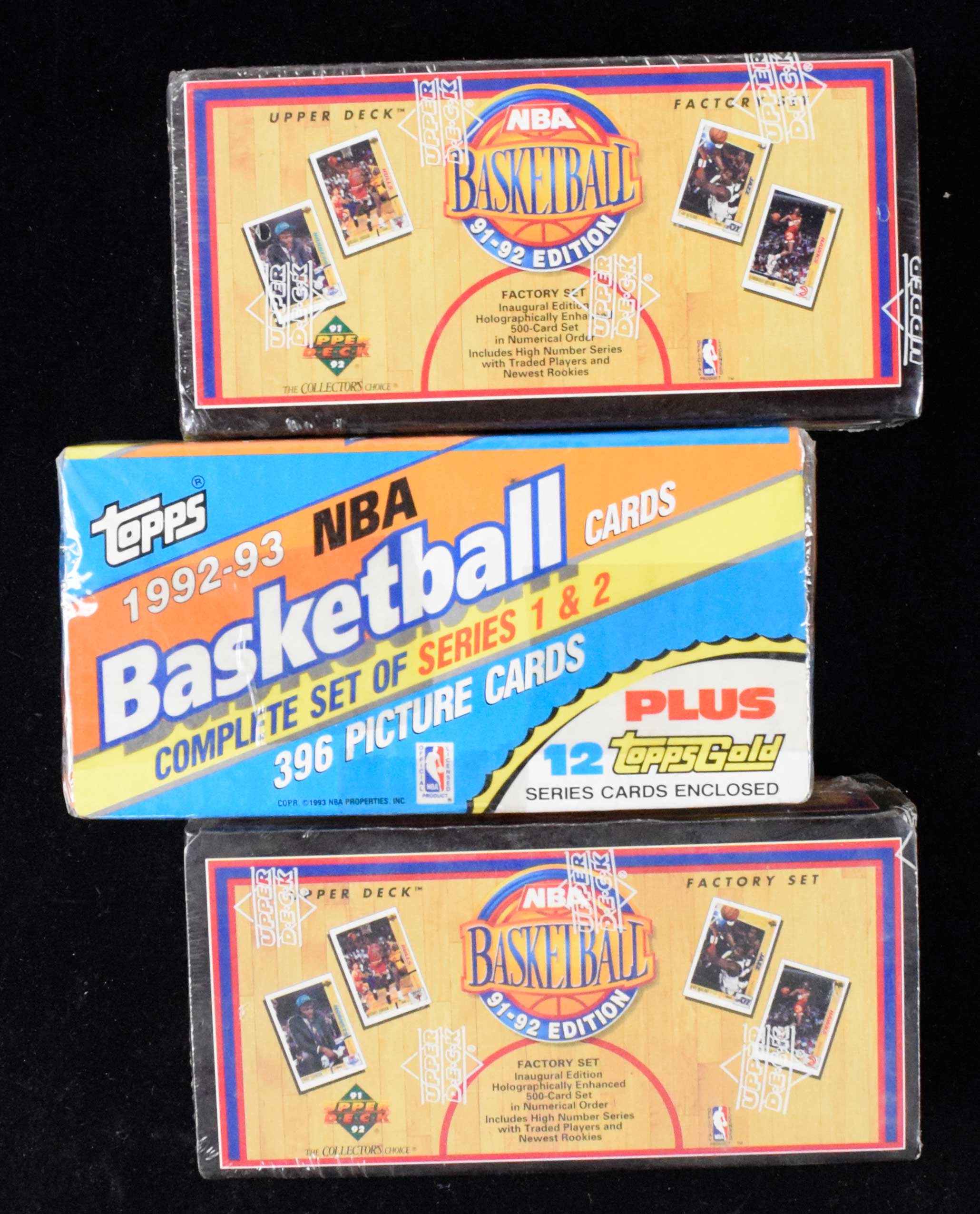Description:Lot of (3) 1991-1992 Topps and Upper Deck basketball factory sets, all sealed (NM-NM/MT). Nice lot of basketball factory sets, with each remaining in its original factory-sealed condition. Includes (2) 1991-92 Upper Deck sets and (1) 1992-93 Topps set. Set boxes: NM-NM/MT, with cards inside presumably NM/MT-MT or better.