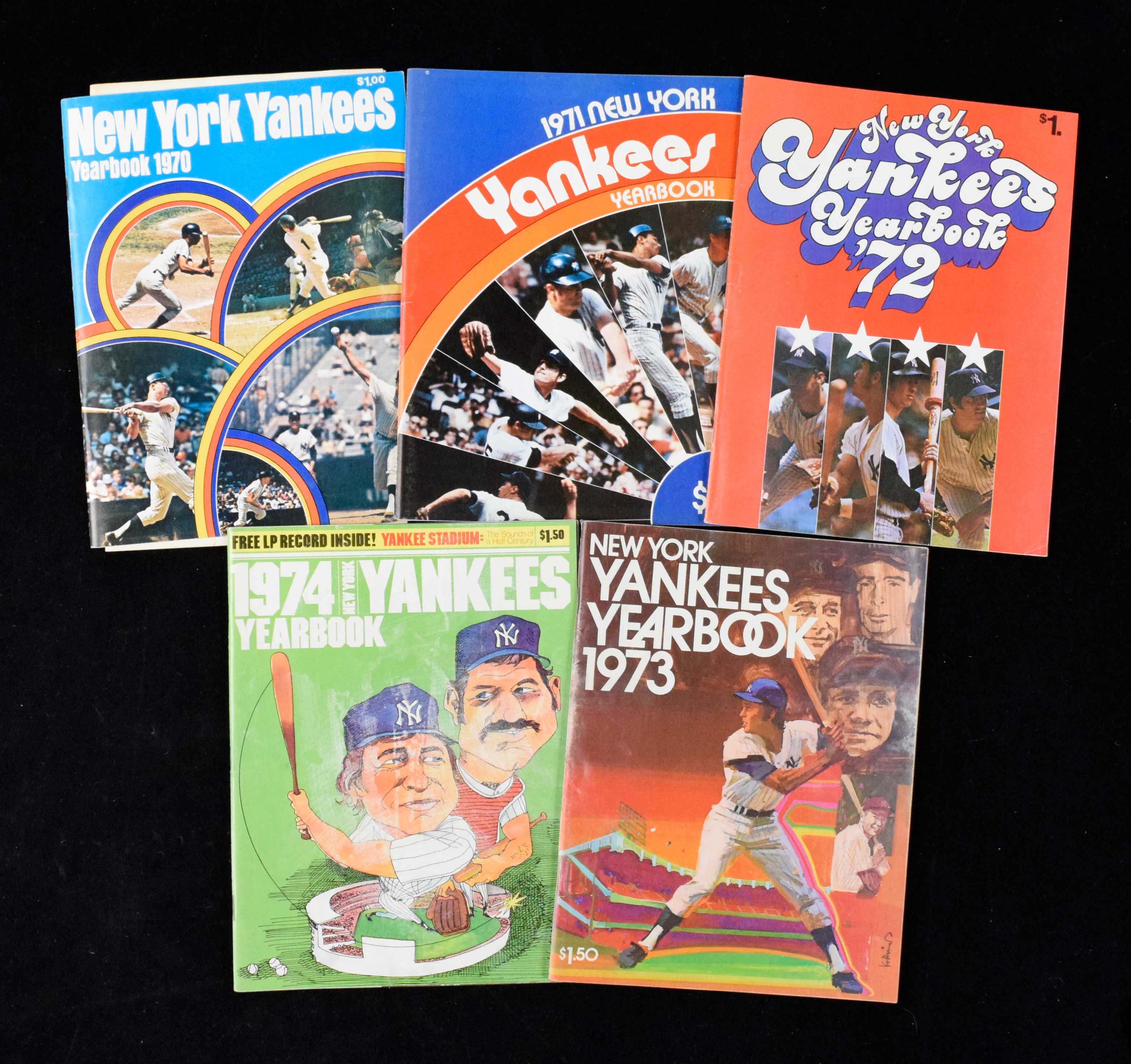Description:Lot of (11) 1970-1980 New York Yankees yearbooks (VG/EX-EX/MT). Good quantity of official New York Yankees publications, with yearbooks from 1970 (with unscored scorecard and press notes), 1971, 1972, 1973, 1974, 1975, 1976, 1977, 1978, 1979 and 1980. Range: VG/EX-EX/MT.