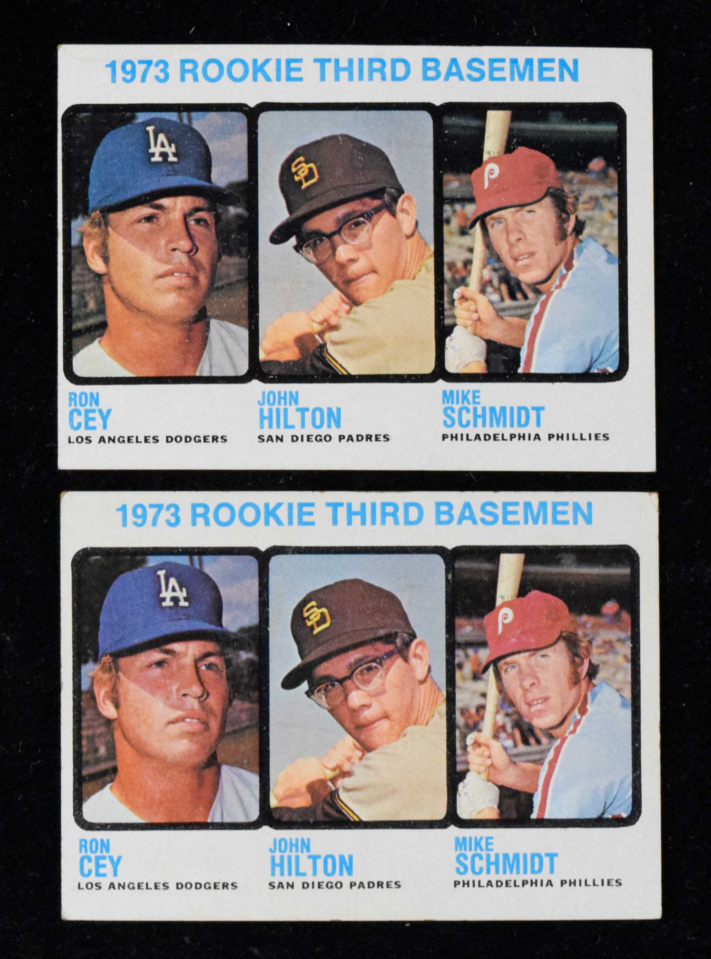 Description:Lot of (2) 1973 Topps #615 Mike Schmidt RCs (VG/EX-EX OC). Rookie lot of the Phillies Hall of Famer includes (1) card (VG/EX) and the other (EX OC). Backs of both cards are clean. Range: VG/EX-EX OC.