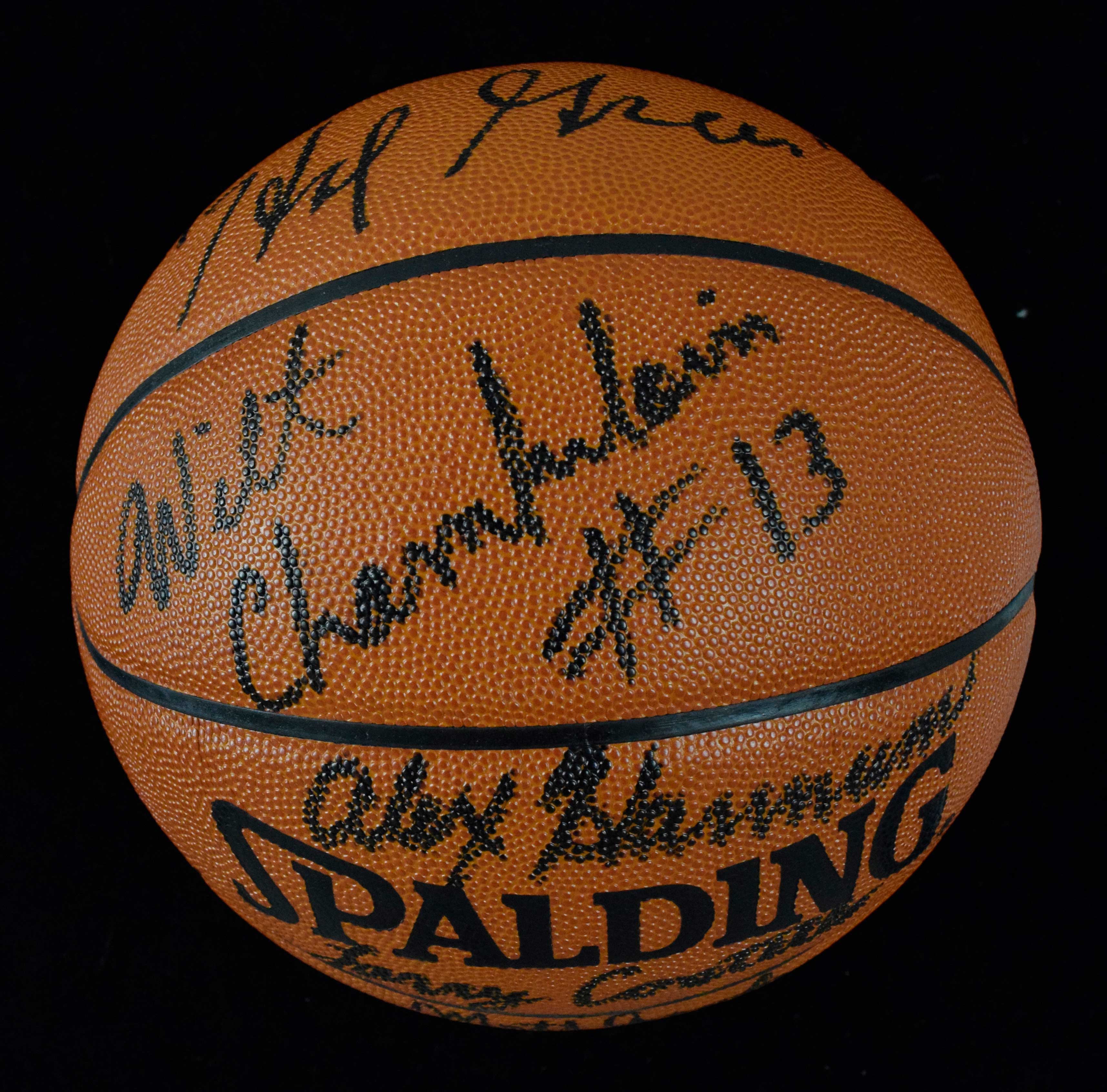 Description:1967 Philadelphia 76ers team signed basketball - (11) signatures with Wilt Chamberlain (NM) Spalding D.Stern Official NBA basketball has been signed by Chamberlain, Jack Ramsey, Hal Greer, Alex Hannum, Dave Gambee, Bill Melchioni, Luke Jackson, Larry Costello, Matt Goukas, Chet Walker, and Wally Jones. Marker signatures rate 8 to 9 out of 10: NM ($2,000-$4,000)