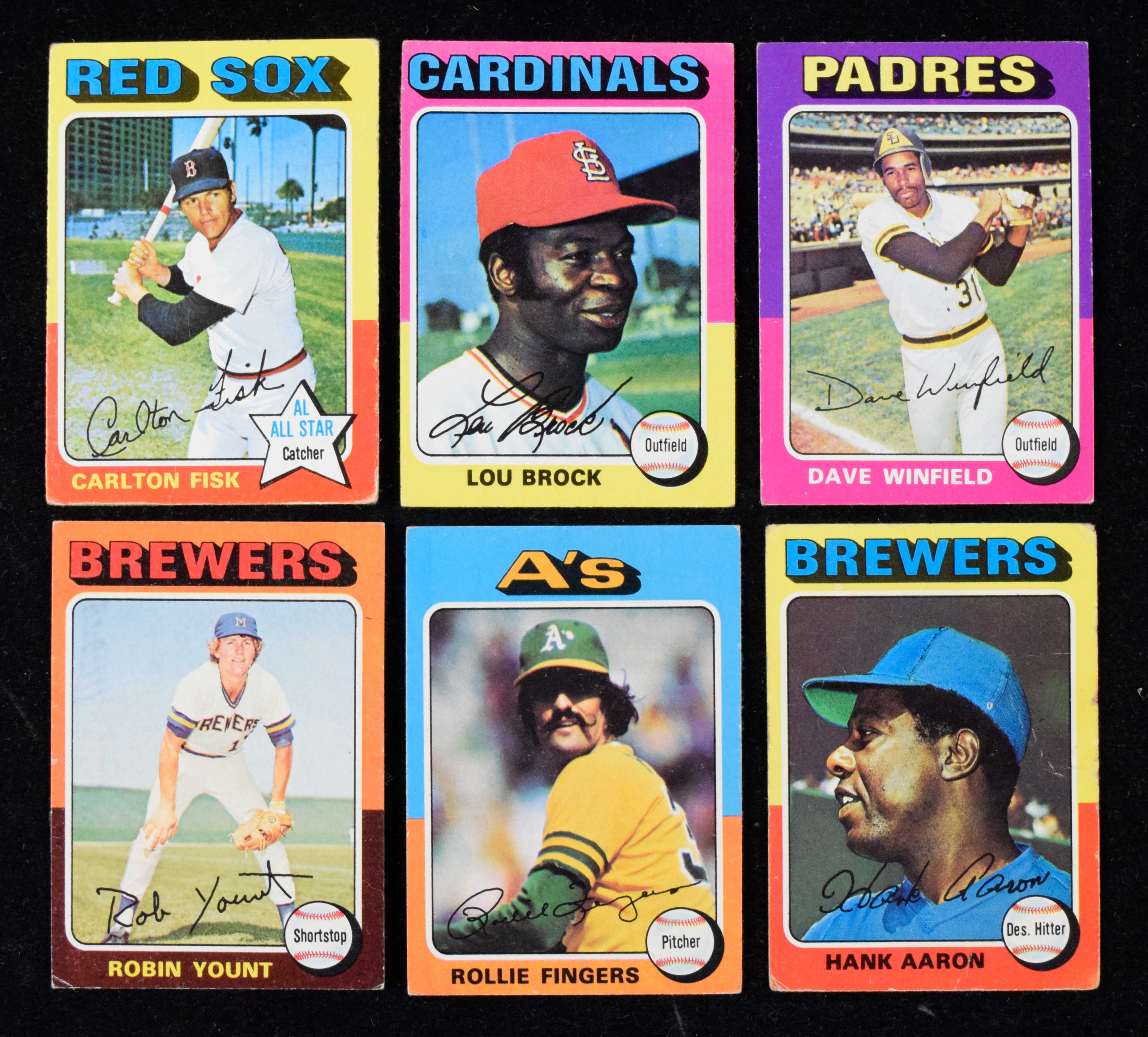 Description:Lot of (600) 1975 Topps Baseball cards including Yount rookie (PR/FR-EX/MT). Partial set of (373) different cards with duplicates mixed in. Highlights include #s 223 Robin Yount rookie (VG) and 660 Hank Aaron (FR-FR/GD). Remainder are mostly commons, with a few stars and HOFers (complete list can be provided upon request). Various conditions throughout the lot. Most appear to average VG overall. Range: PR/FR-EX/MT