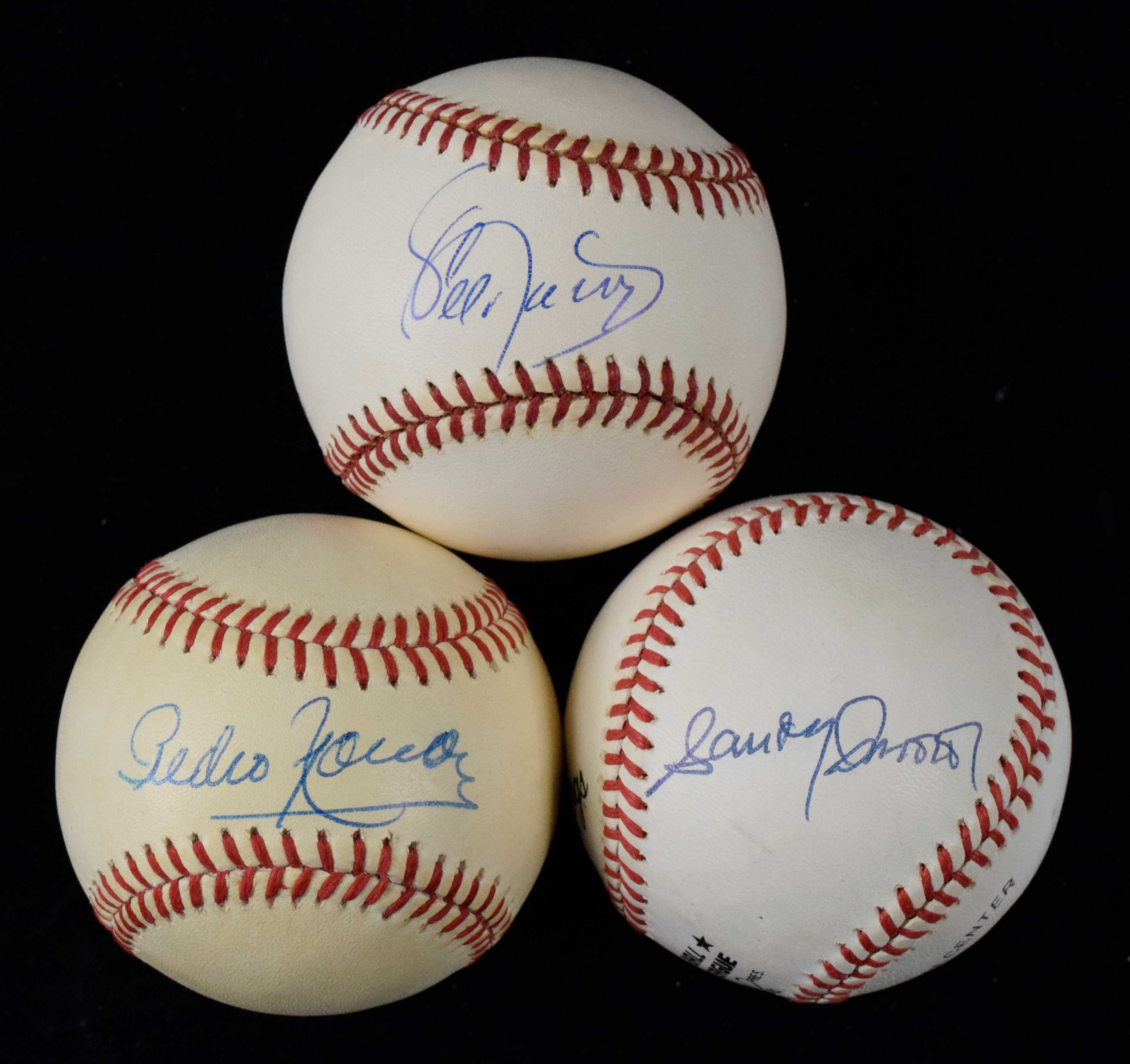 Description:Felo Ramirez, Sandy Amoros, and Pedro Ramos signed baseballs (EX-EX/MT). Includes G.Budig AL ball (light toning) signed by Felo Ramirez, W.White NL ball (light toning) signed by Sandy Amoros, and B.Brown AL ball (toning) signed by Pedro Ramos. Signatures rate 8/9 to 9/10 out of 10: EX-EX/MT