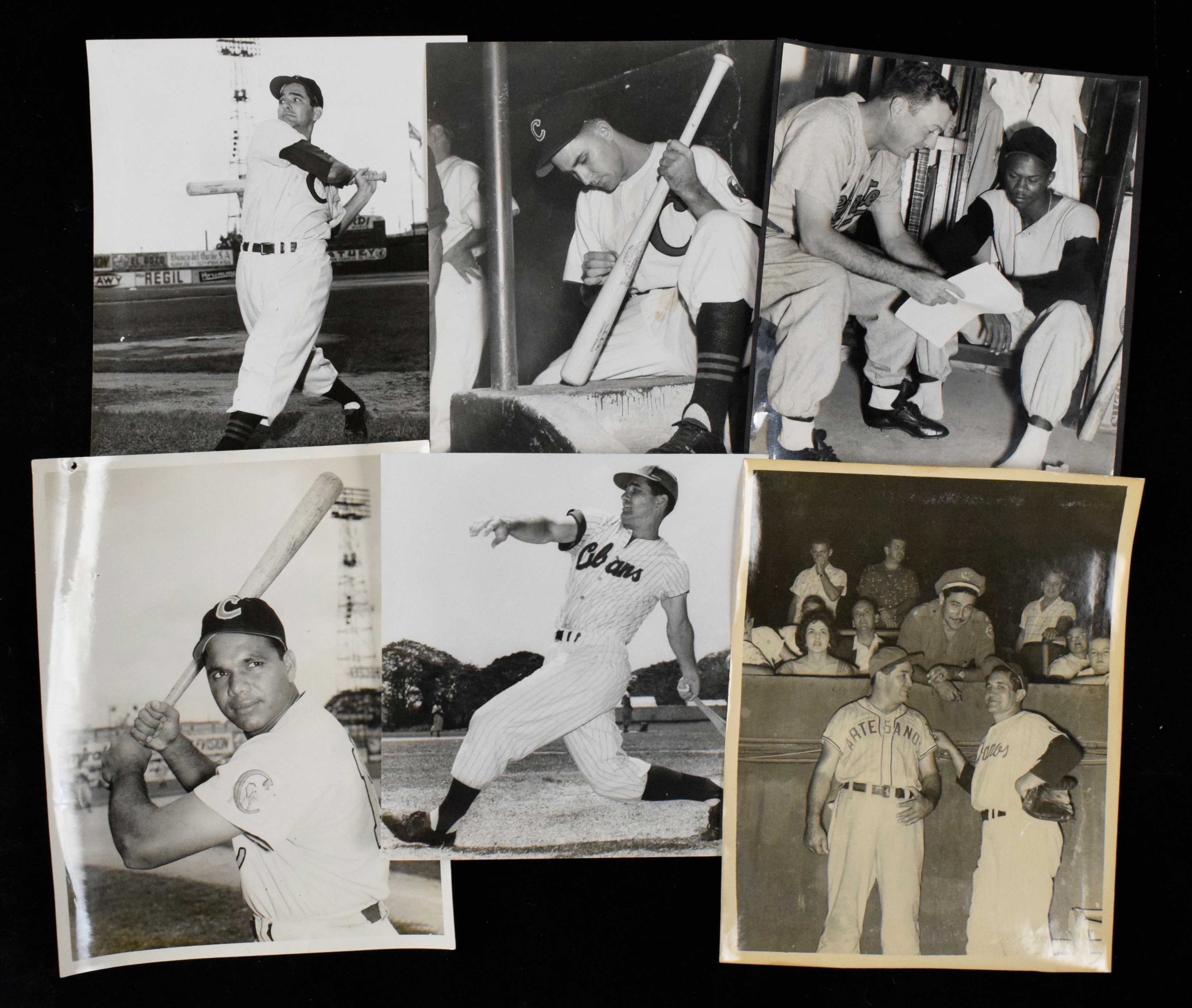 Description:Lot of (39) vintage Cuban baseball photographs, c.1950s (FR/GD-EX/MT). Sizes range from around 4"x6" - 8"x10", with approx. half affixed to construction paper. Mix of individual and multi-player images. Players include Billy Herman, Raul Lopez, Connie Marrero, Oscar Sierra, Fernando Tapanes, Luis "Camaleon" Garcia, Fermin Guerra, Rene Catala, Armando Martinez, Rocky Nelson, Pedro Formental, Sandy Consuerga, Regino Otero, Jim Pendleton, Julio Rojo, Bert Haas, Hector Rodriguez, and others. Most appear to average VG overall. Range: FR/GD-EX/MT