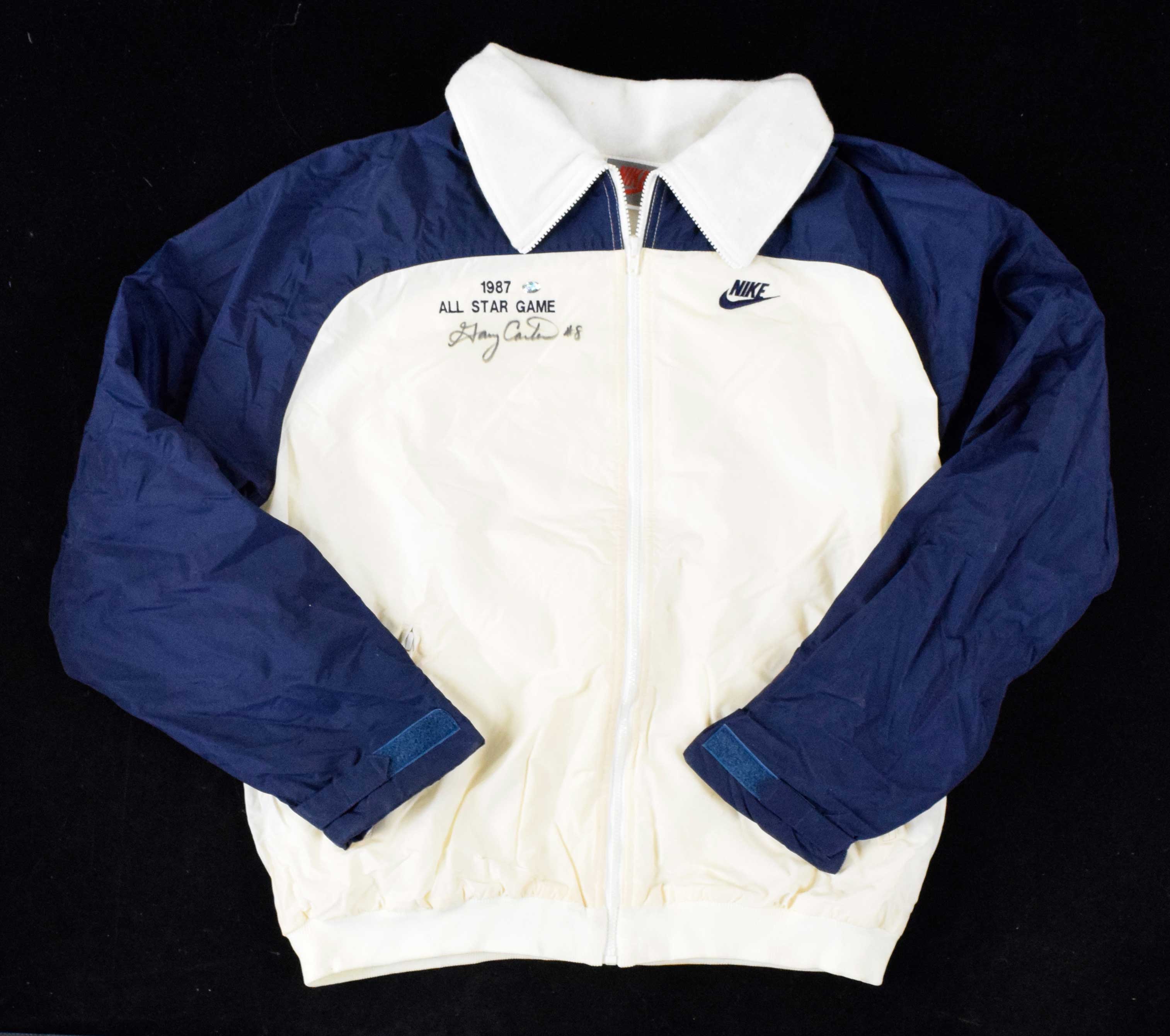 Description:Gary Carter signed 1987 All-Star Game professional model jacket - Carter Authenticated (EX/MT). Nike XL jacket with "1987 ALL STAR GAME" embroidered on the chest. Carter signed the front in black marker. Signature rates 8 out of 10. Gary Carter Authenticated hologram sticker is on the jacket. Light wear: EX/MT