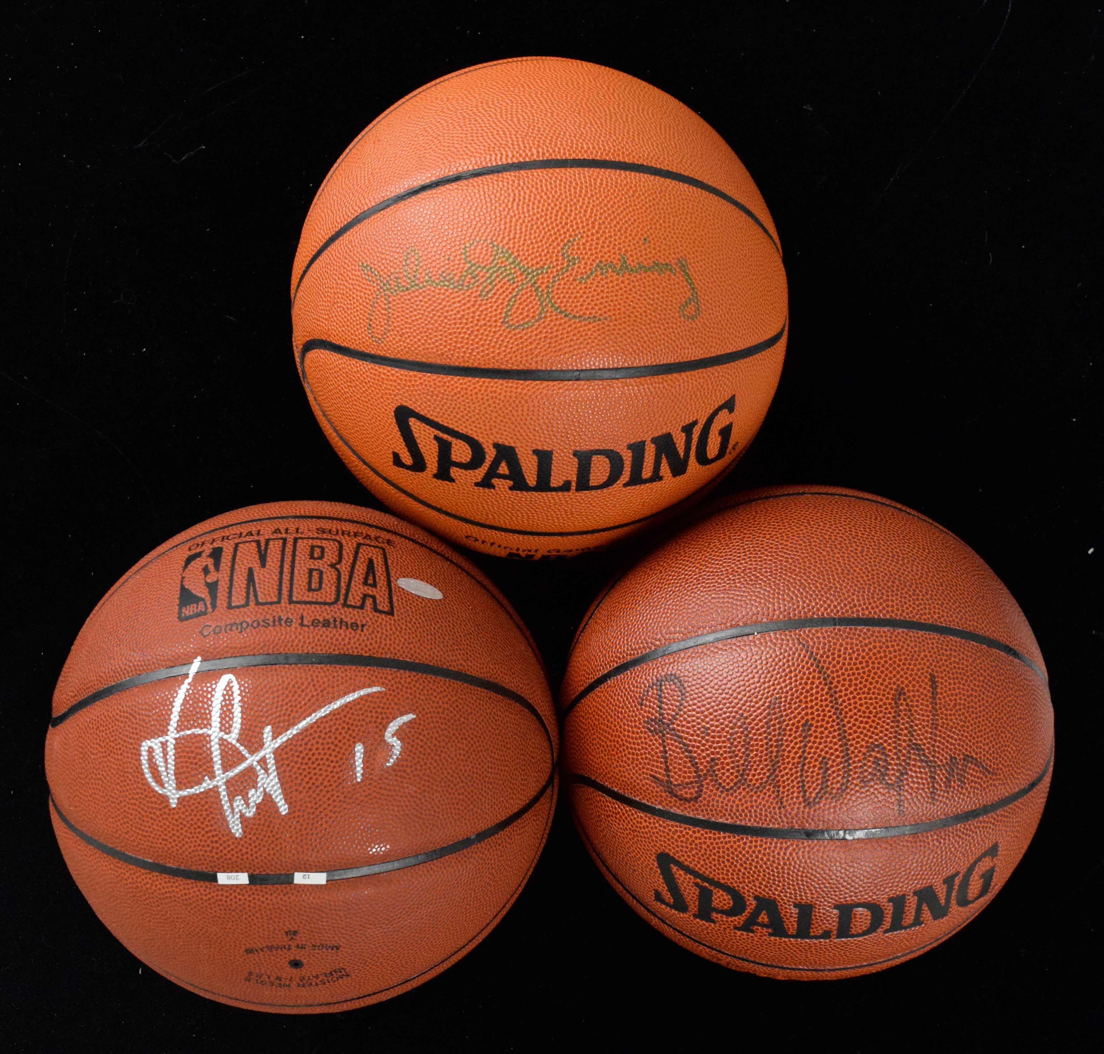 Description:Bill Walton, Julius Erving, and Vince Carter signed basketballs (EX/MT-NM/MT). Includes a Spalding NBA indoor/outdoor ball signed by Bill Walton in black marker rating 8/9 out of 10, Spalding official D.Stern NBA ball signed by Julius "Dr. J" Erving in gold marker rating 7/8 out of 10, and Spalding NBA all-surface ball signed by Vince Carter in silver marker rating 7 out of 10 due to some minor smudging (Steiner): EX/MT-NM/MT
