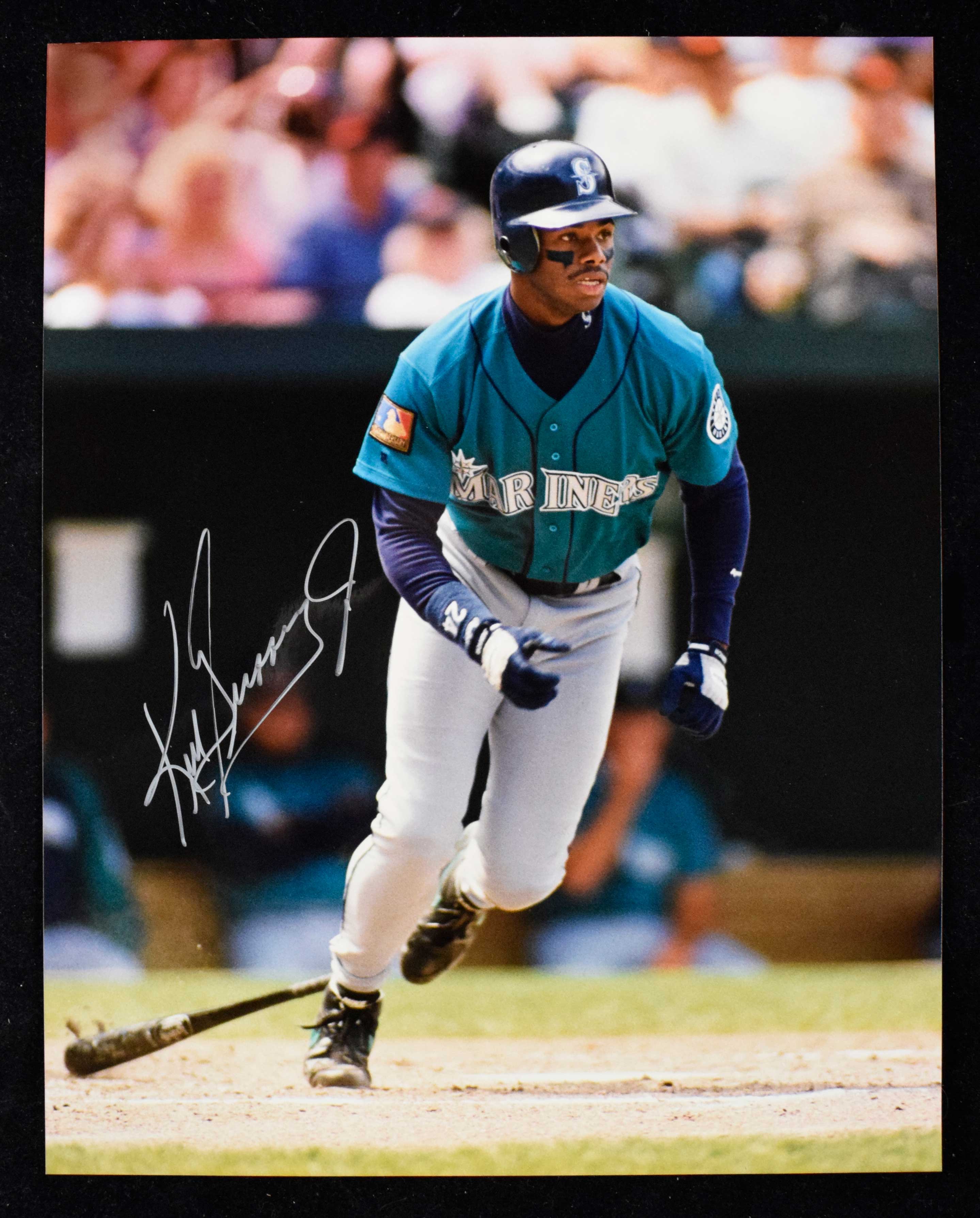Ken Griffey Jr. signed 11"x14" photograph (NM). Griffey signed the photo in silver marker. Signature rates 9/10 out of 10: NM