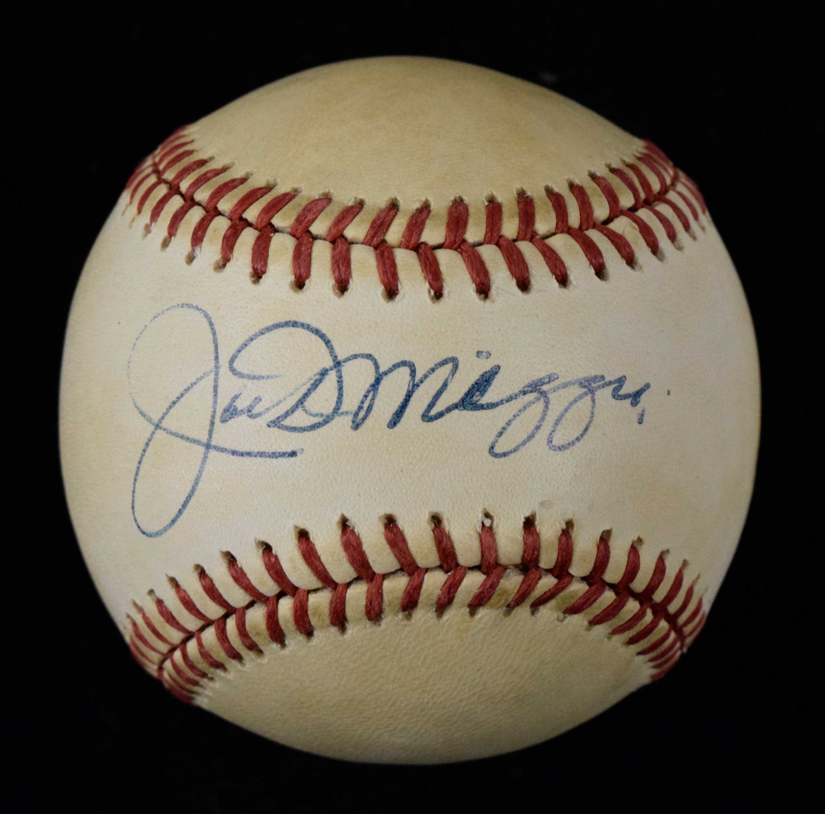 Description:Joe DiMaggio signed B.Brown AL baseball (VG/EX). DiMaggio signed the sweet spot in blue ink. Signature rates 8 out of 10. Areas of toning on each panel: VG/EX