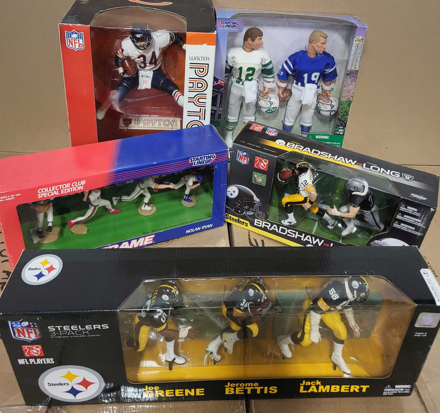 Description:Large lot of oversize Starting Lineups and McFarlane figurines (NM-NM/MT overall). Includes (10) 18"x18"x24" boxes all containing oversize McFarlane figurines and Starting Lineups (many multi-figurine editions). Mix of baseball, basketball, football, and hockey. Mostly unsorted, but minimal wear to those examined, so it is presumed most remain NM-NM/MT overall.