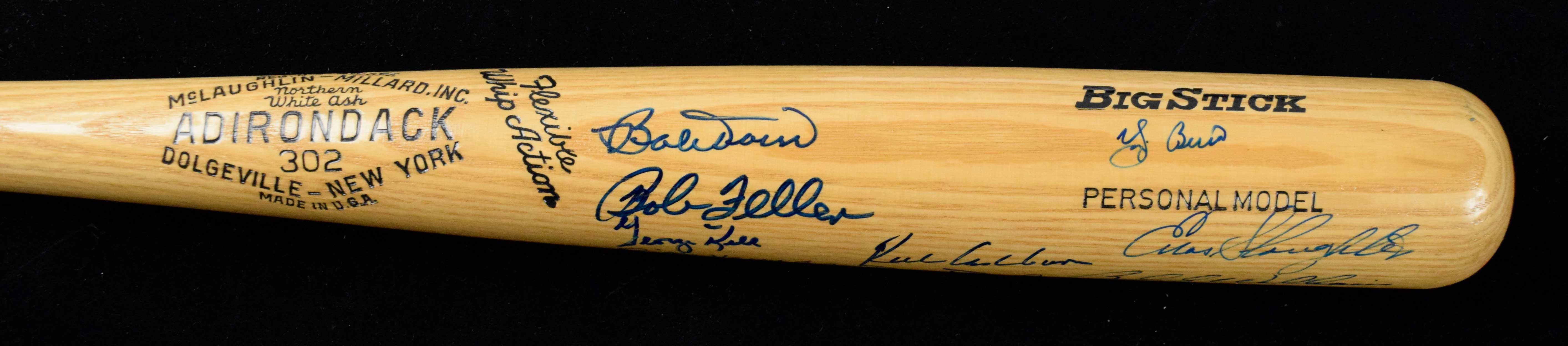 Description:Hall Of Famers multi-signed baseball bat (NM). 34" Adirondack 302 Big Stick signed by (13) including Richie Ashburn, Bob Doerr, Yogi Berra, Bob Feller, Billy Herman, Robin Roberts, Johnny Mize, Charlie Gehringer, Monte Irvin, Enos Slaughter, George Kell, Mike Schmidt, and Billy Williams. Signatures rate 7 to 10 (avg 8) out of 10: NM