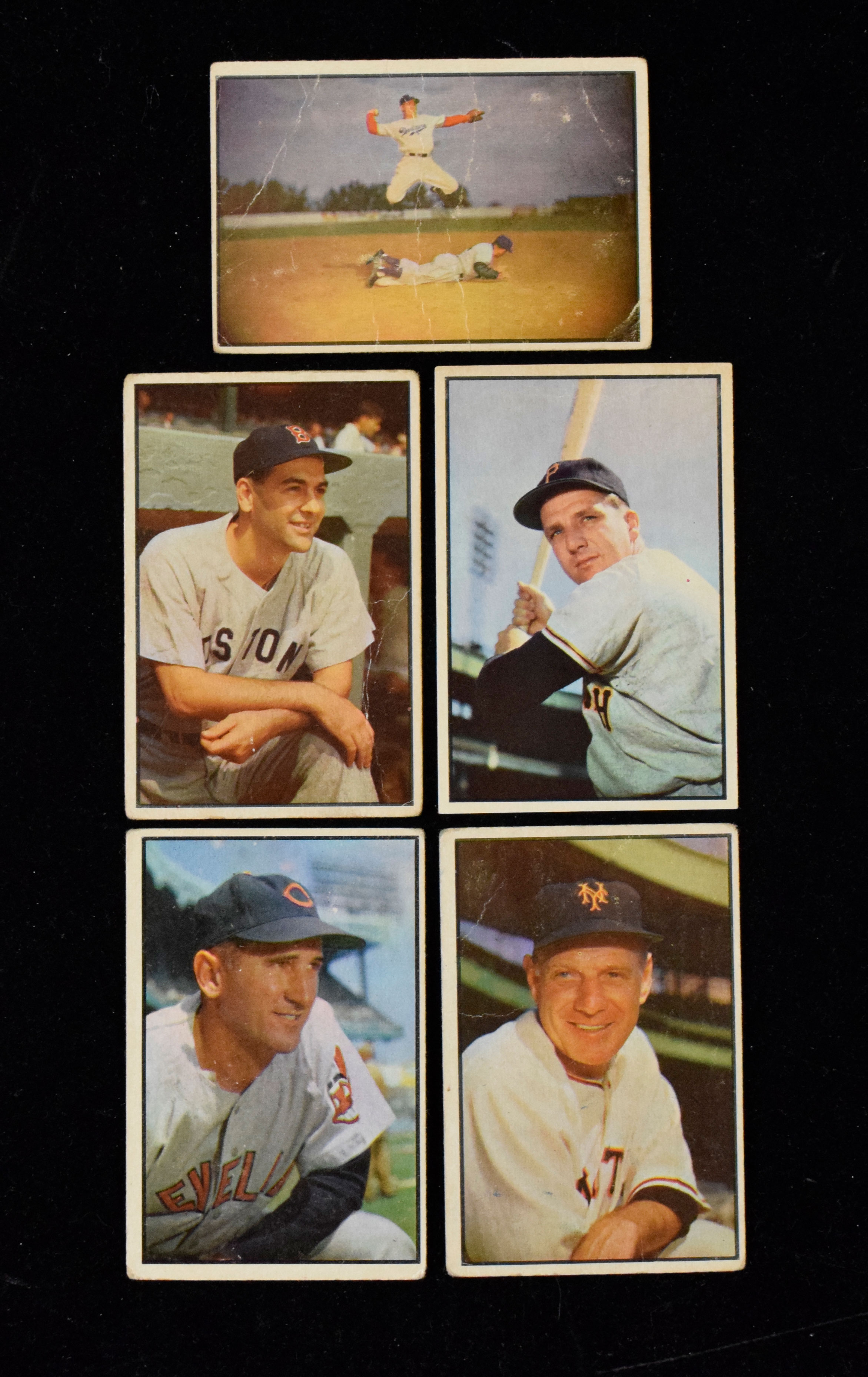 Description:Lot of (55) 1953 Bowman Color cards including Pee Wee Reese (PR-VG/EX) Lot of (55) cards including Pee Wee Reese (PR), Ralph Kiner (GD), Leo Durocher (GD), Early Wynn (FR), and Al Lopez (GD). Balance are commons with a handful of semi-stars and average VG with GD-VG/EX general range and there are a few lesser: PR-VG/EX