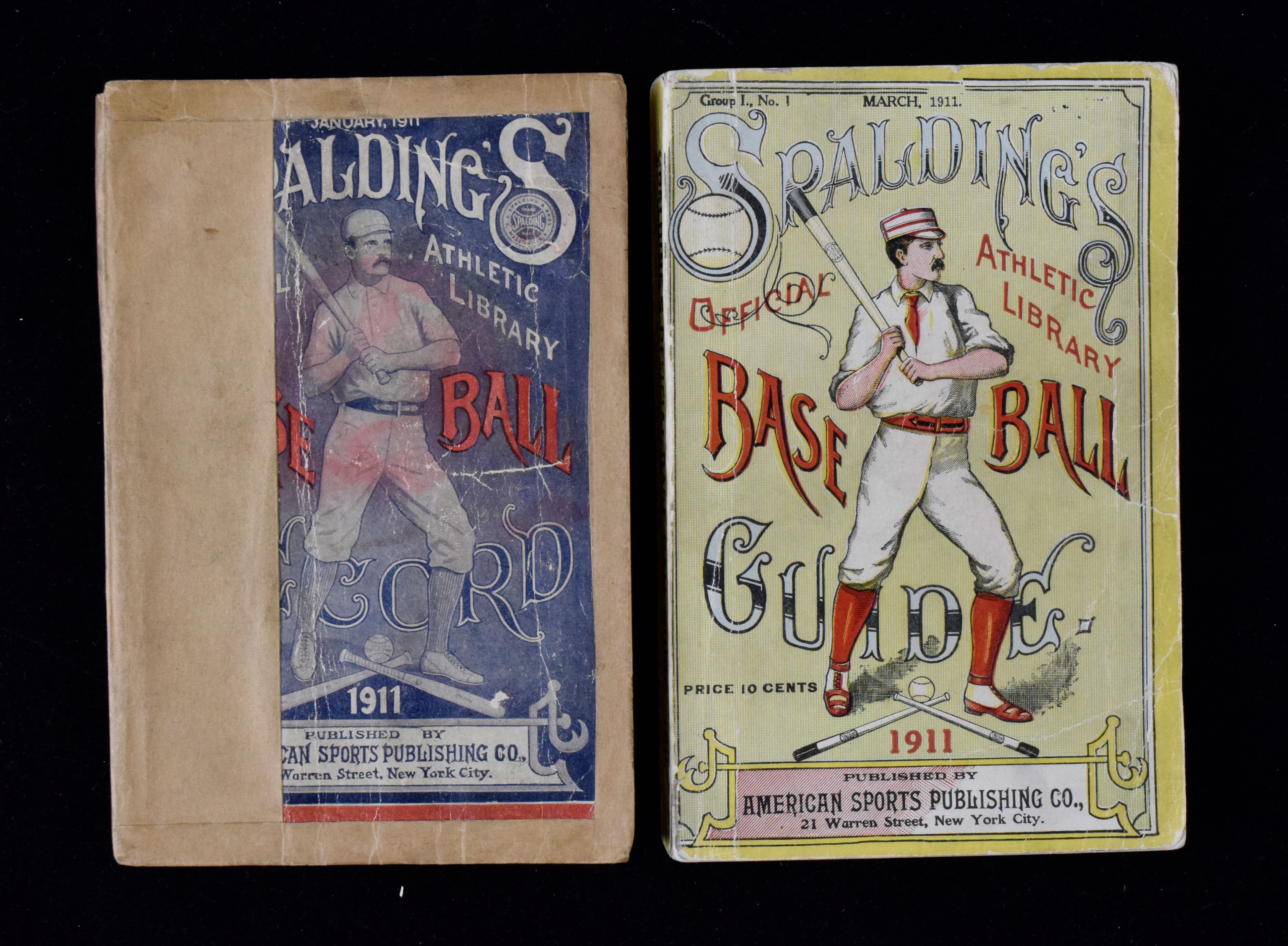Description:1911 Spalding baseball guide and record books (PR/FR-VG). Includes 1911 Spalding's Base Ball Guide (VG), and 1911 Spalding's Base Ball Record (PR/FR-FR replaced cover).