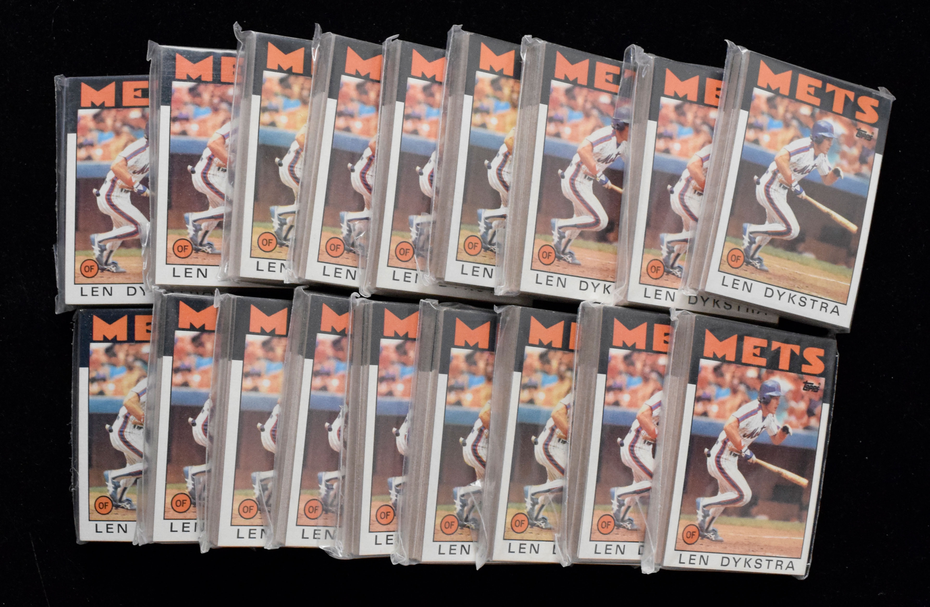 Description:Lot of (450) 1986 Topps #53 Lenny Dykstra rookie cards (NM overall). Includes (18) sleeves with (25) per sleeve. Appear to show minimal wear: NM overall