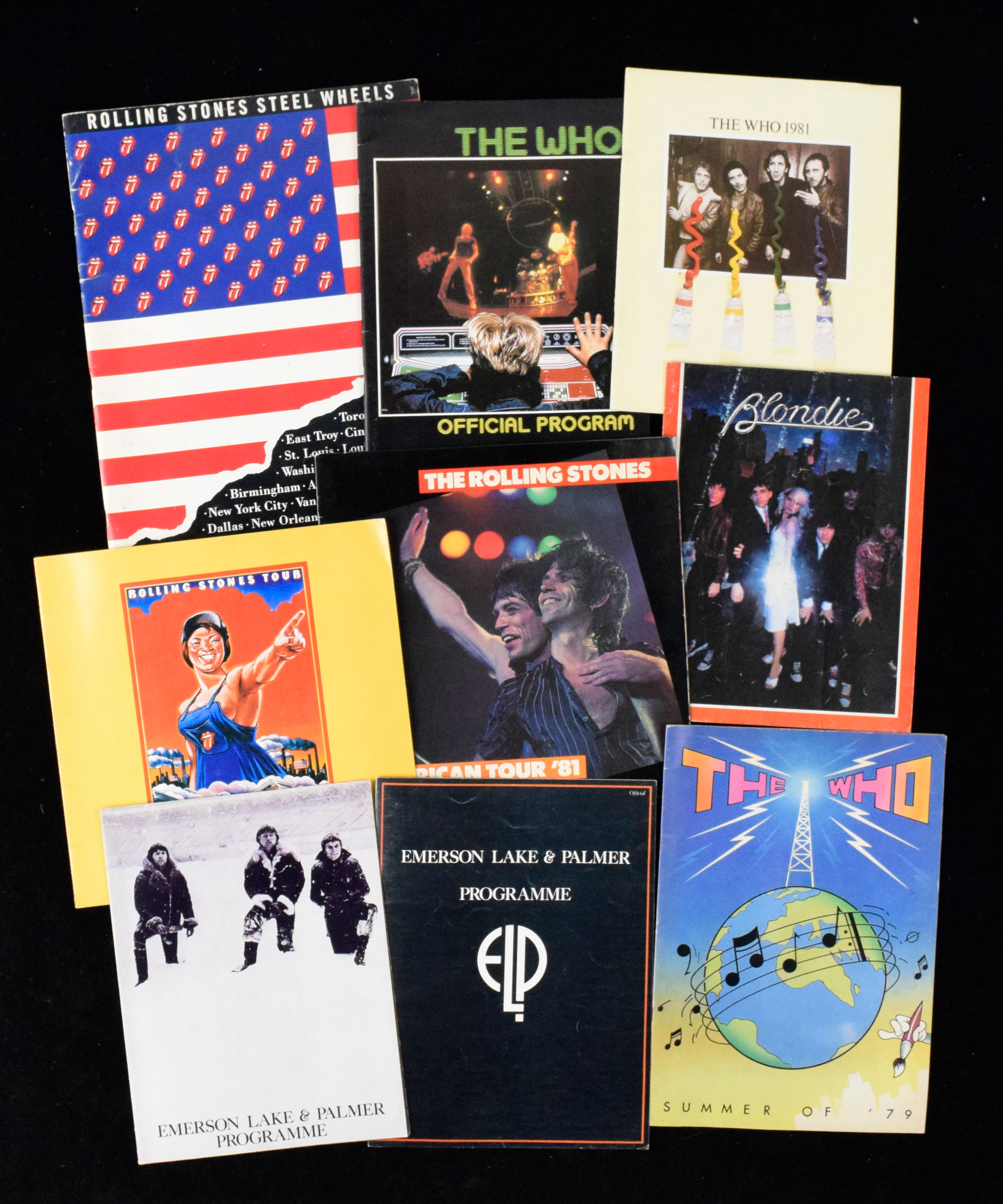 Description:Lot of (13) concert programs (VG/EX-NM). Includes (3) 1977 Emerson Lake & Palmer, 1978 The Rolling Stones, 1979 Blondie (VG/EX), 1979 The Who, 1981 The Rolling Stones, (3) 1981 The Who, 1982 The Who, 1989 The Rolling Stones, and 1996 The Who. Most appear to average EX overall with normal handling wear. Range: VG/EX-NM