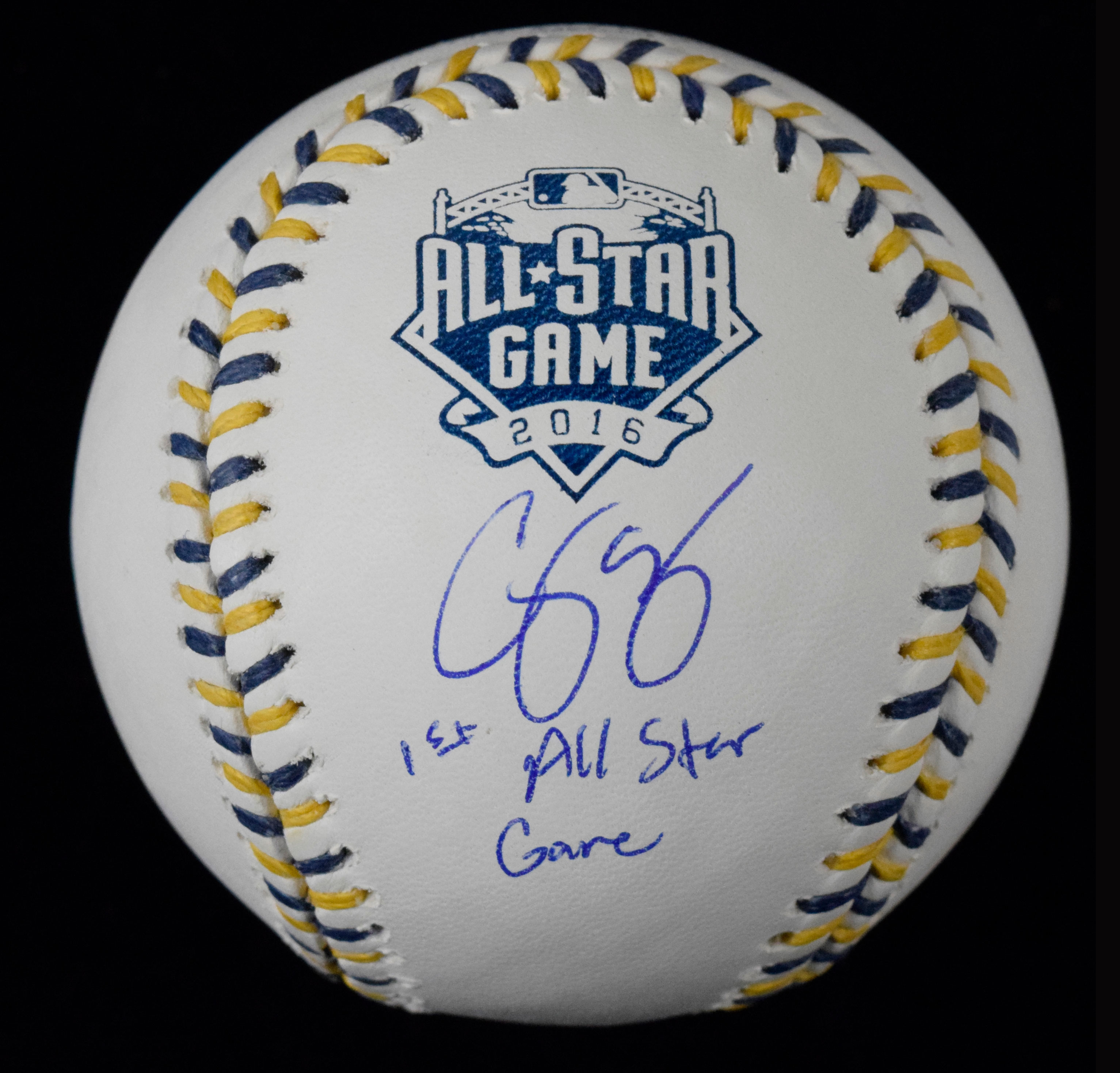 Description:Corey Seager signed & inscribed 2016 All-Star Game baseball - Fanatics & MLB Authenticated (NM). Seager signed the ball in blue ink and added "1st All Star Game" inscription. Signature rates 8/9 out of 10. Fanatics and MLB Authenticated serial #ed hologram stickers are on the ball: NM