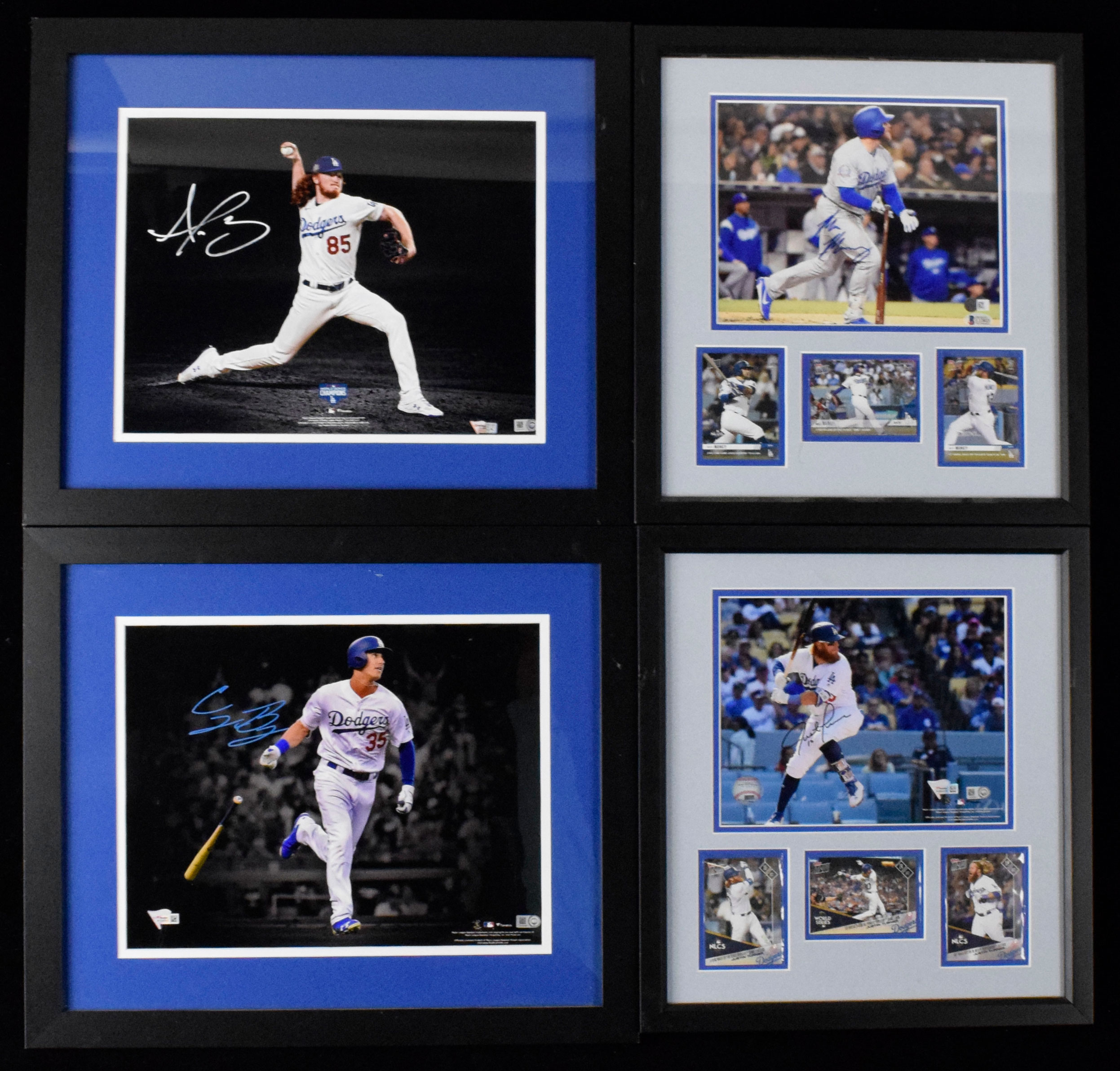 Description:Lot of (7) signed Los Angeles Dodgers photos - Beckett & MLB Authenticated (NM-NM/MT all framed). Includes 15"x16.5" framed photo signed by Max Muncy (Beckett Witnessed), 17"x20" framed photo signed by Dustin May (Fanatics and MLB Authenticated), 17"x20" framed photo signed by Cody Bellinger (Fanatics and MLB Authenticated), 15"x16.5" framed photo signed by Justin Turner (Fanatics and MLB Authenticated), 15"x16.5" framed photo signed by Chris Taylor (Fanatics and MLB Authenticated), 15"x16.5" framed photo signed by Gavin Lux (Fanatics and MLB Authenticated), 15"x17" framed photo signed by Kike Hernandez (Fanatics and MLB Authenticated). Signatures rate 8/9 to 10 out of 10. Due to framing, complete conditions are unknown: NM-NM/MT appearance