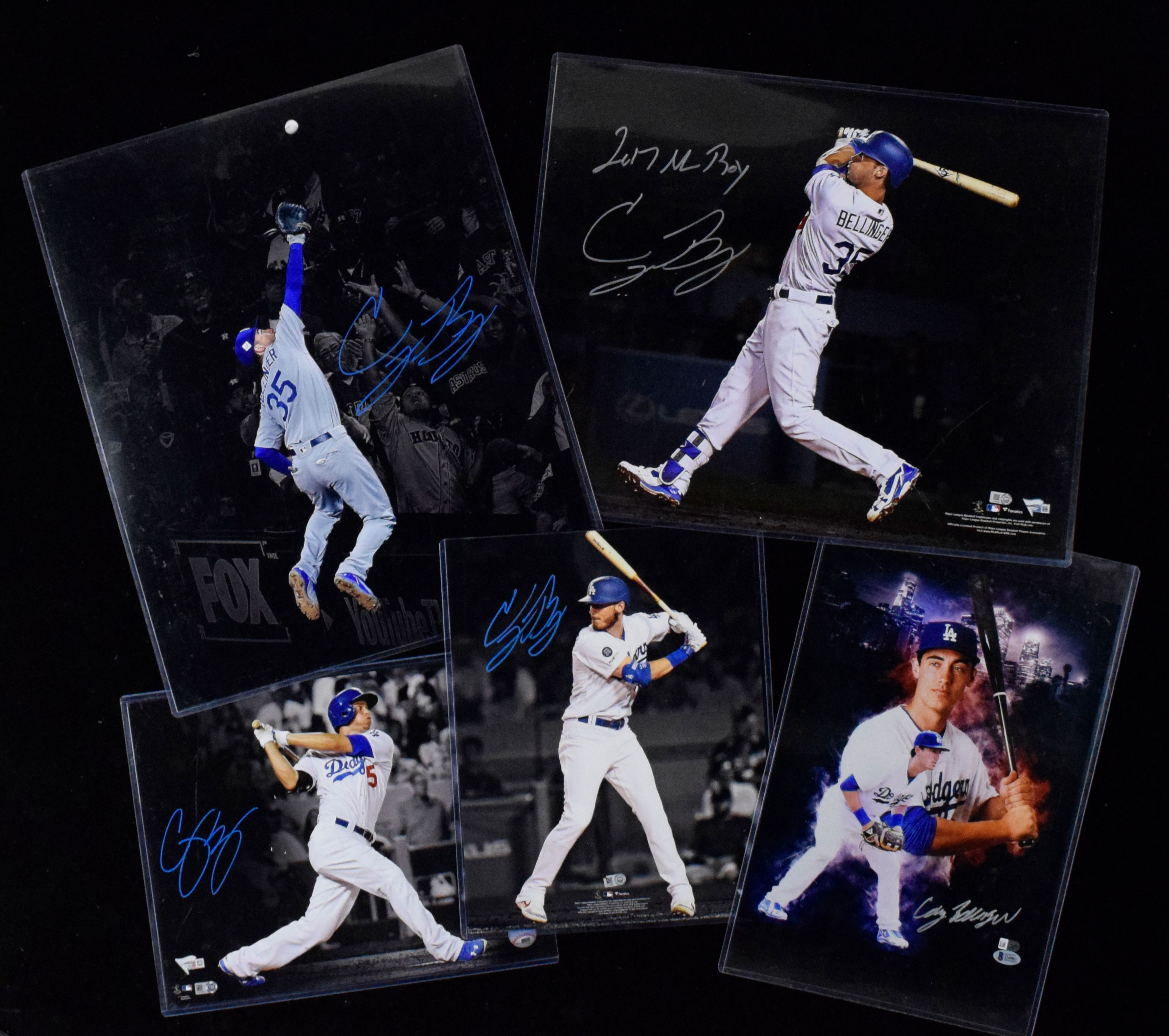 Description:Lot of (9) Cody Bellinger signed 11"x14" and 16"x20" photos - Beckett & MLB Authenticated (NM-NM/MT). Includes (6) signed 16"x20" photos signed by Bellinger (2 with "2017 NL ROY" inscriptions), and (3) 11"x14" photos signed by Bellinger. Signatures rate 8 to 10 out of 10. All are either Beckett, Fanatics, and/or MLB Authenticated: NM-NM/MT