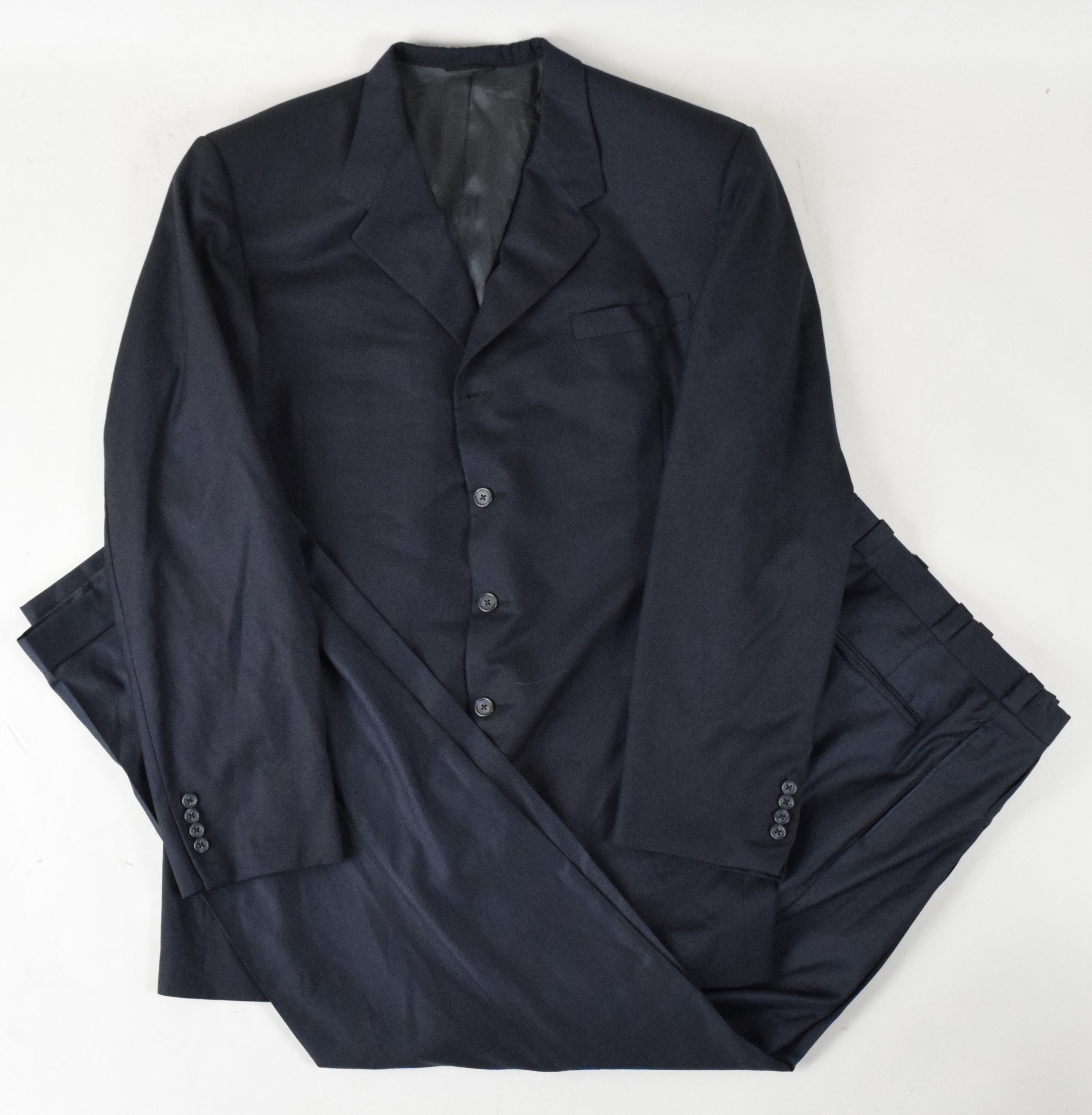 Description:Bill Walton's hand tailored suit (EX/MT). Royal Classic blazer with "Exclusively Hand Tailored For Bill Walton" tag above an interior pocket, and matching navy blue pants (untagged). Includes certificate of provenance from Walton Family: EX/MT