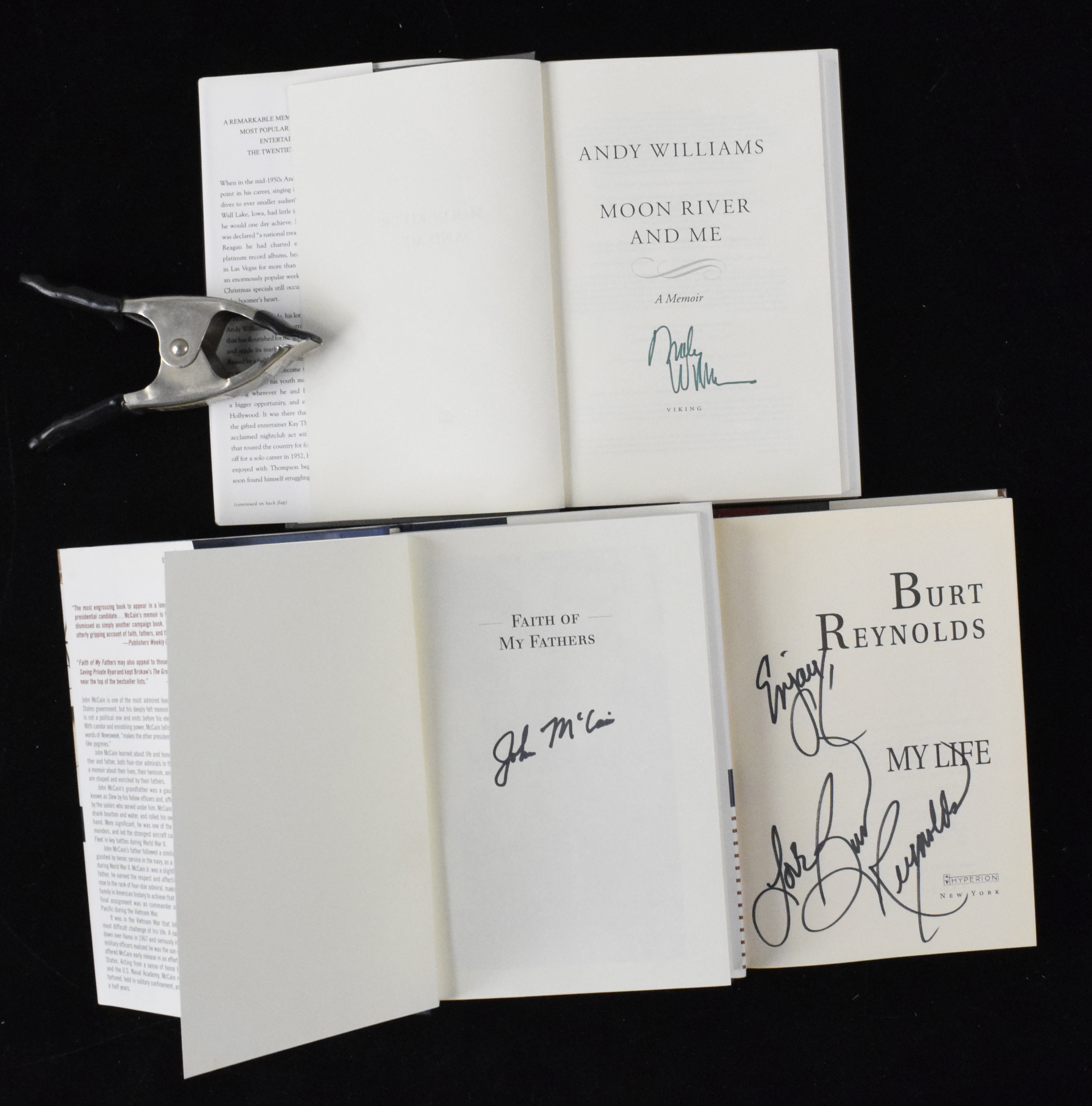 Description:"Nice lot of (12) signed hardcover non-sports & entertainment books (VG-NM/MT). Includes 1984 ""Tough Guys Don't Dance"" signed by Norman Mailer (personalized); 1989 ""The Killing Man"" signed by Mickey Spillane (personalized); 1990 ""Get Shorty"" signed by Elmore Leonard; 1994 ""My Life"" signed by Burt Reynolds; 1997 ""Cimarron Rose"" signed by James Lee Burke; 1999 ""Faith Of My Fathers"" signed by John McCain; 2002 ""Just Lucky I Guess"" signed by Carol Channing (moisture stain); 2002 ""Bad Boy Brawly Brown"" signed by Walter Mosley; 2009 ""Moon River and Me"" signed by Andy Williams; 2017 ""Two's Company"" signed by Suzanne Somers; 2019 ""Inside Family Guy"" signed by Seth MacFarlane; and 2021 ""The Beauty of Living Twice"" signed by Sharon Stone. Signatures rate 7 to 10 (avg 8/9) out of 10. Most books appear to average EX/MT-NM overall. Range: VG-NM/MT"