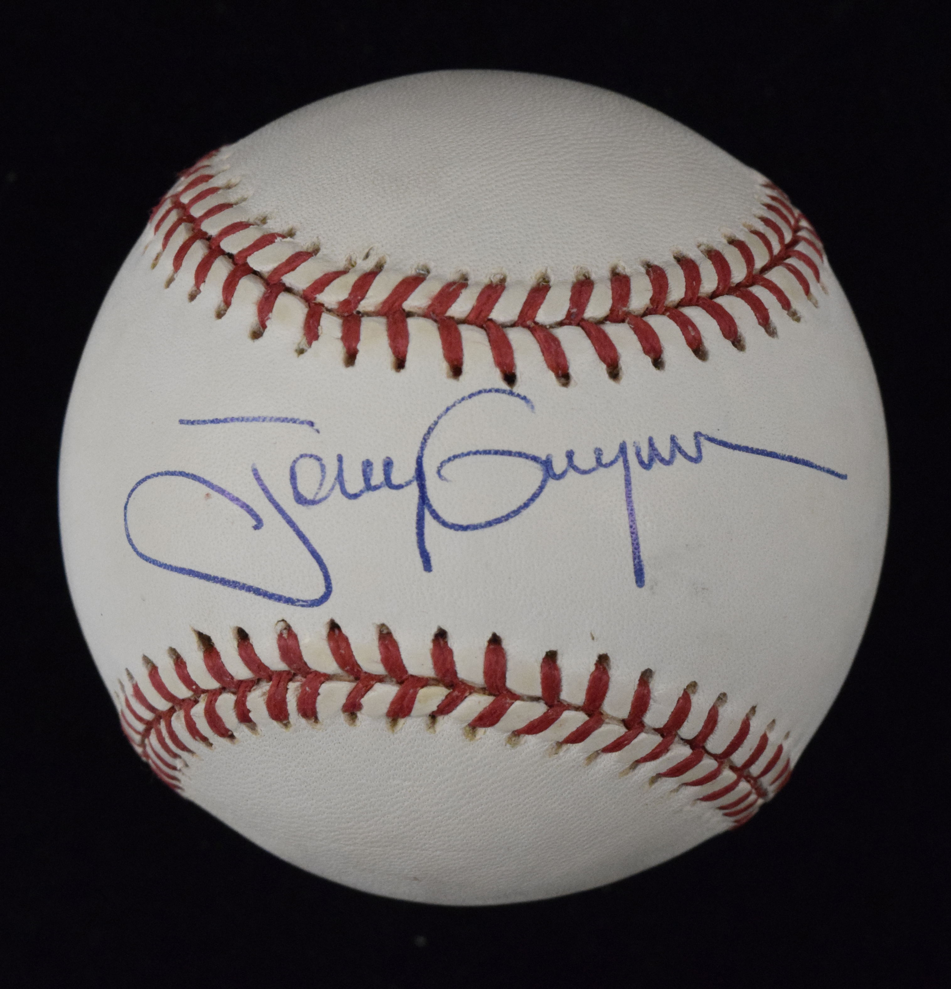 Description:"Very nice Tony Gwynn autographed L. Coleman baseball (Sig. MT). L. Coleman N.L. baseball has been signed on the sweet spot by Padres great Tony Gwynn, rating 9 out of 10. Ball is very lightly toned: NM. "