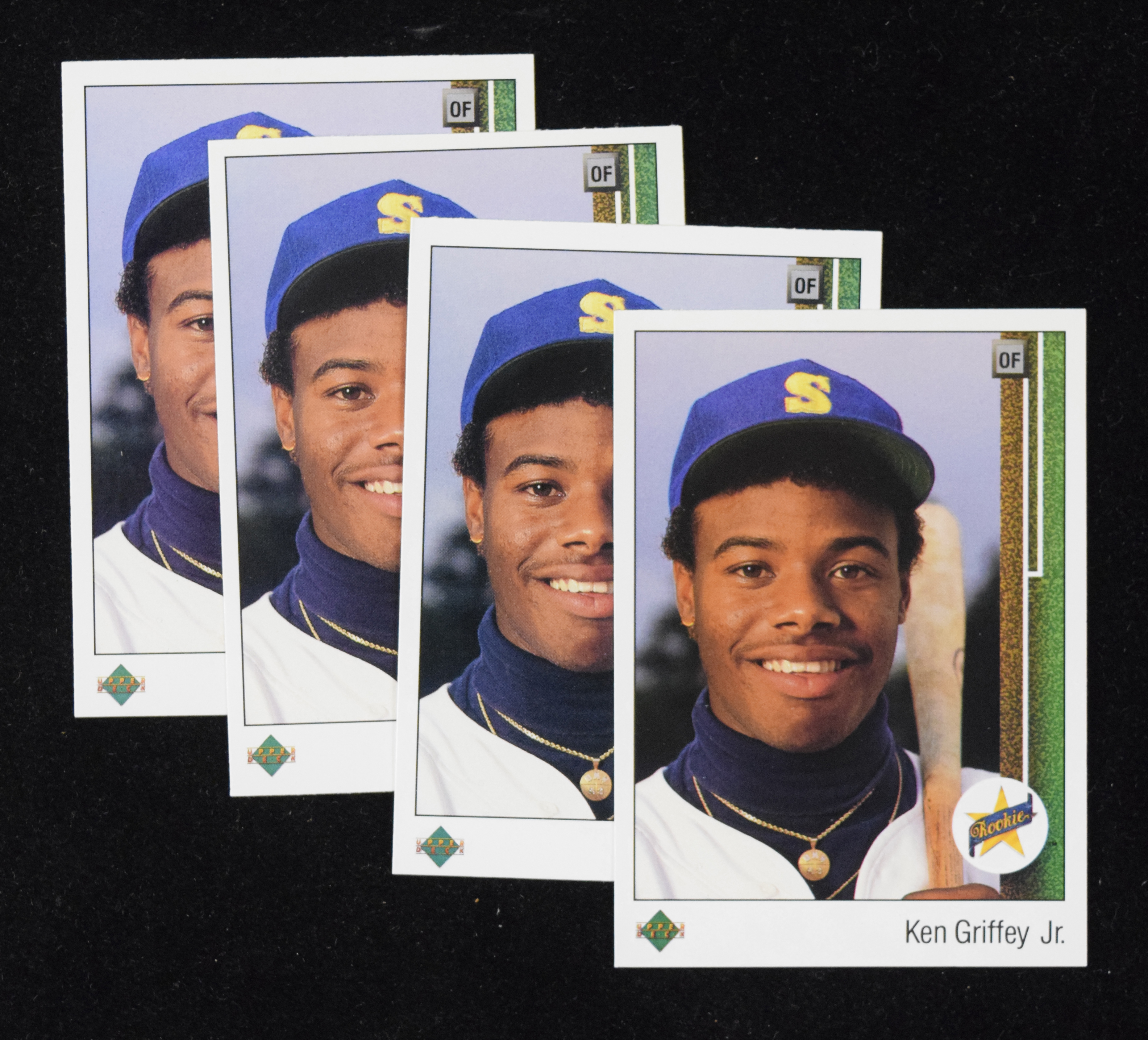 Description:"Lot of (4) 1989 Upper Deck #1 Ken Griffey Jr. RCs (EX/MT-NM). Clean lot of the iconic #1 1989 Upper Deck Ken Griffey Jr. rookie card, with (3) copies grading (EX/MT) and (1) NM. Backs of all four are clean: EX/MT-NM. "