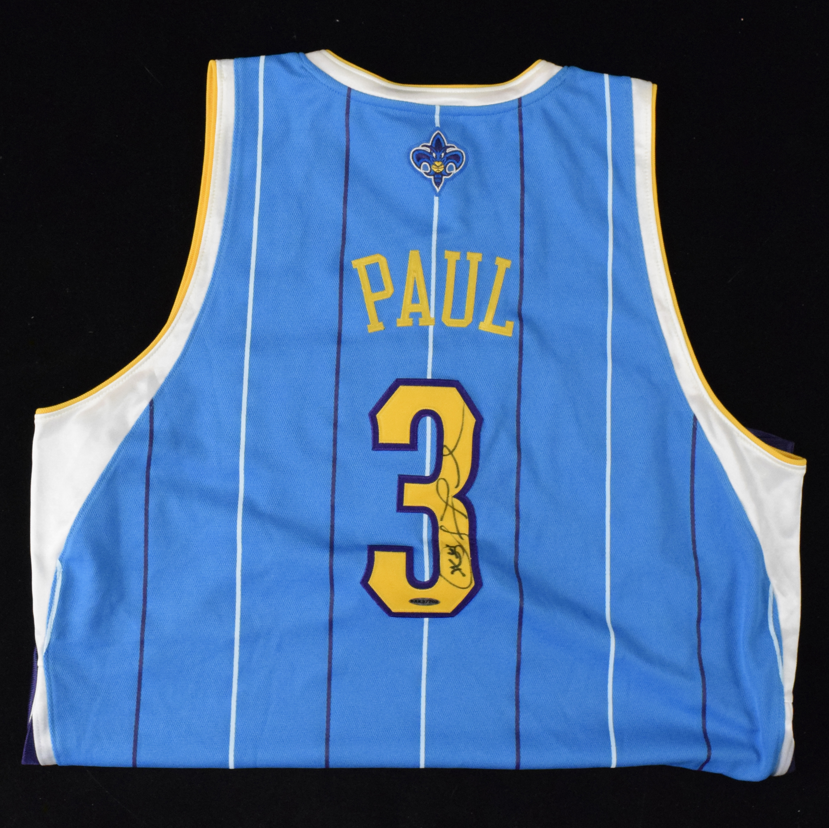 Description:"Chris Paul autographed New Orleans Hornets jersey with Upper Deck Authenticated cert (Sig. MT). Adidas size 48 Chris Paul New Orleans Hornets jersey has been signed on the back number by Paul, rating 9 out of 10. An Upper Deck Authenticated hologram is affixed to the back number, and a basic cert is also included. Jersey is like-new: NM/MT, and comes with original Upper Deck Authenticated box. "