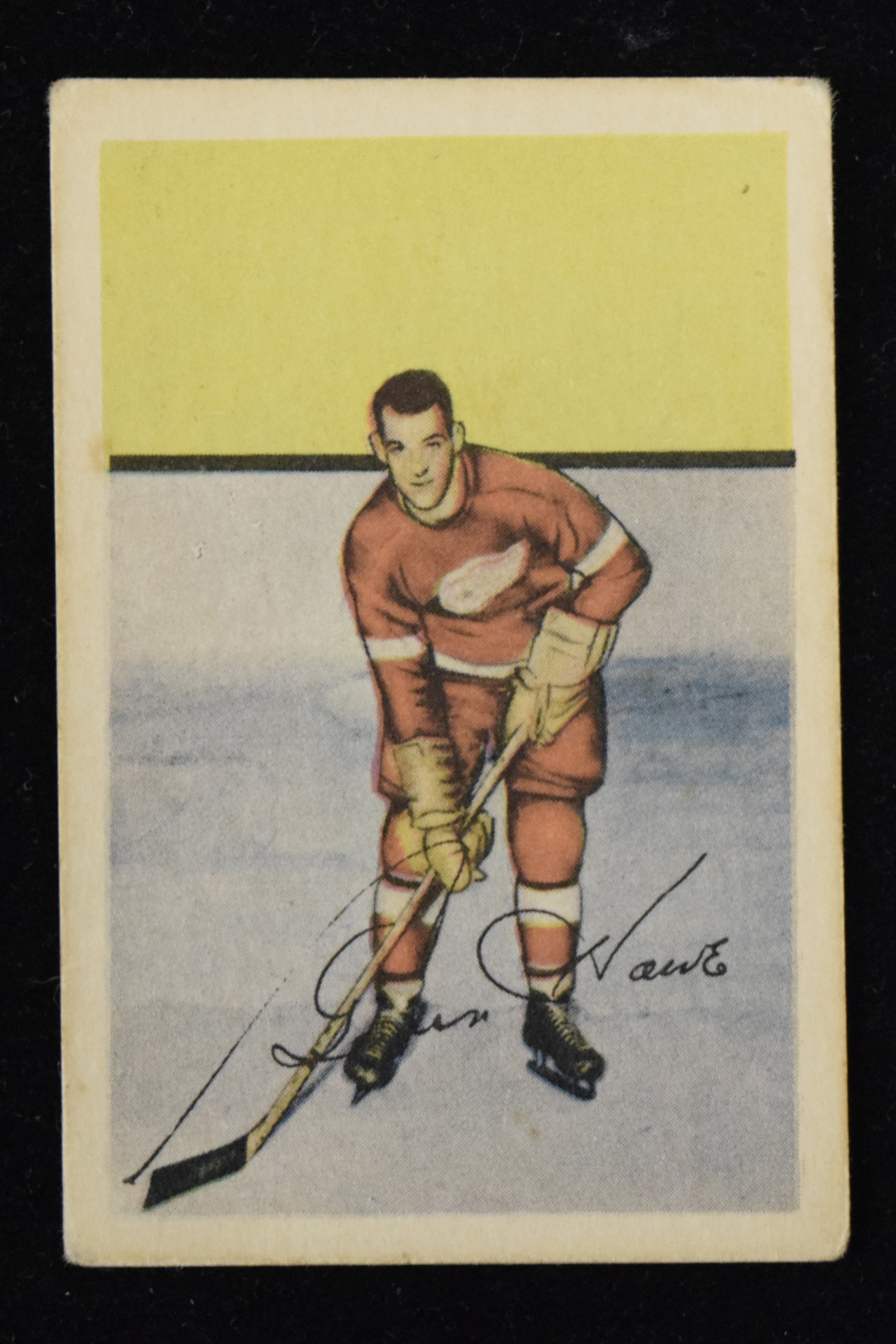 Description:"1952 Parkhurst #88 Gordie Howe (GD). Second-year card of the all-time NHL great retains excellent eye appeal on the front with no creases and four moderately rounded corners. Unfortunately the card is marred by a heavy wax stain on the reverse, accounting for the technical grade: GD. "