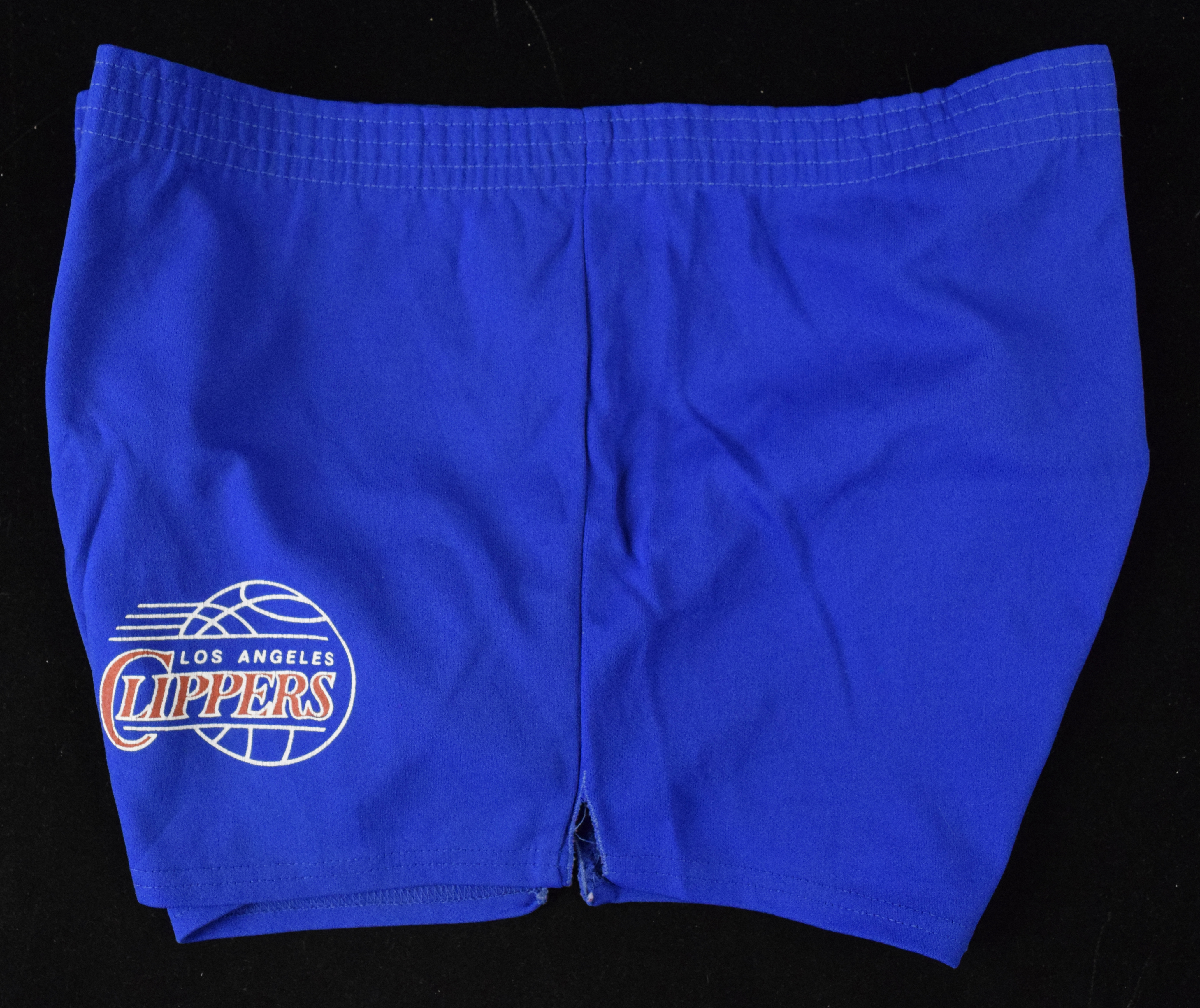 Description:Bill Walton professional model Los Angeles Clippers practice shorts, c.1984-85 (EX). Don Alleson brand size XL shorts with Clippers logo on the left leg. Spots of stitch fraying on the back waist. Includes certificate of provenance from Walton Family: EX