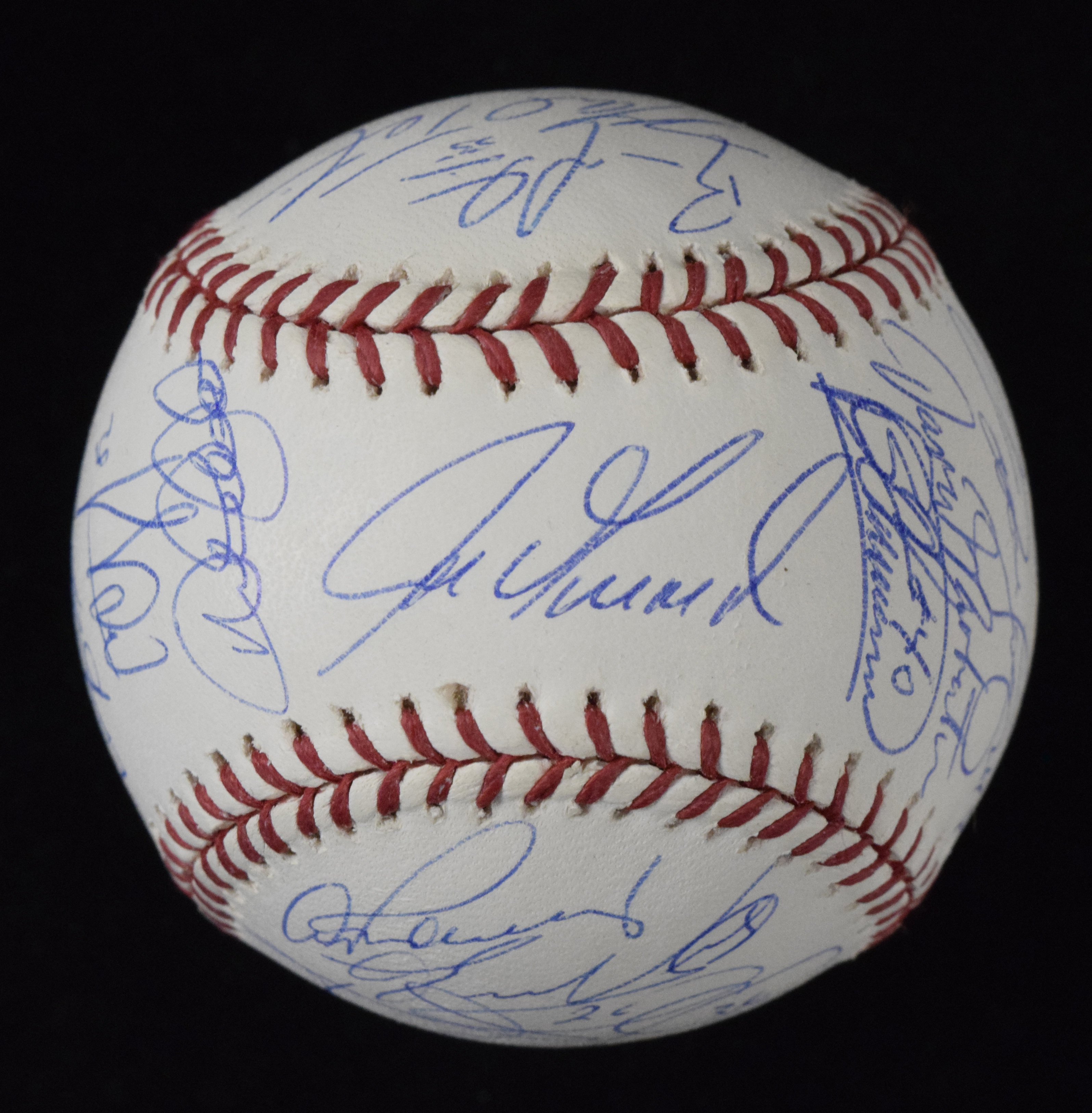 Description:2011 New York Yankees team signed baseball - PSA/DNA (NM). B.Selig ML ball signed by (23) members of the 2011 American League East champion Yankees including Joe Girardi, Mariano Rivera, Derek Jeter, C.C. Sabathia, Alex Rodriguez, Robinson Cano, Jorge Posada, Brett Gardner, David Robertson, Mark Teixeira, Freddy Garcia, Nick Swisher, Andruw Jones, and others. Signatures rate 7/8 to 9/10 out of 10. PSA/DNA serial #P00217 sticker is on the ball: NM ($300-$500)