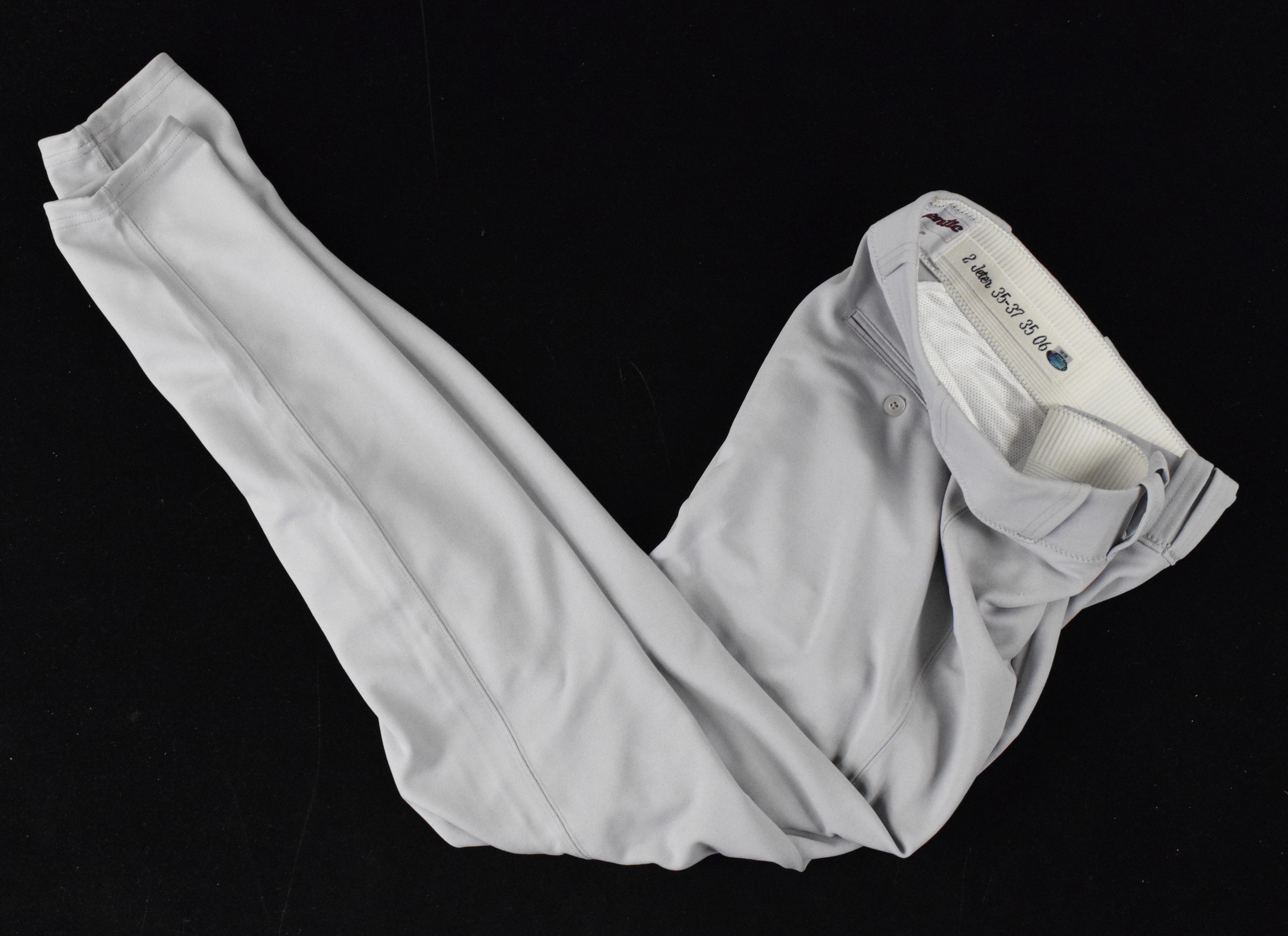 Description:2006 Derek Jeter game worn New York Yankees pants - Steiner (EX/MT). Majestic MLB Authentic Collection gray Yankees road pants with "2 Jeter 35-37 35 06" strip tag sewn inside the waist. Steiner Game Used serial #ed hologram sticker is on the strip tag (COA no longer present). Light overall use/wash wear: EX/MT ($750-$1,500)