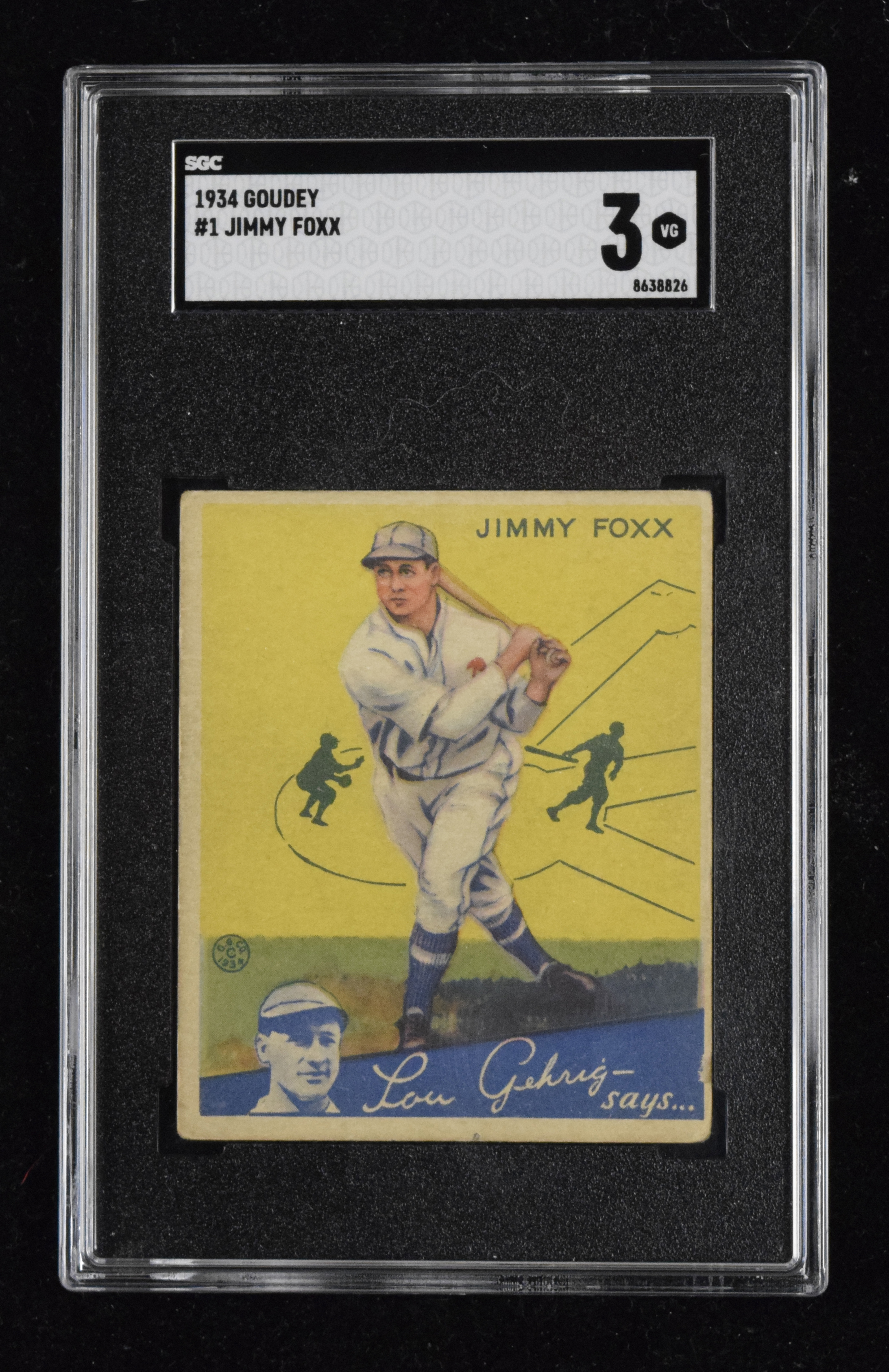 Description:1934 Goudey #1 Jimmy Foxx graded SGC 3 (VG). ($750-$1,000)