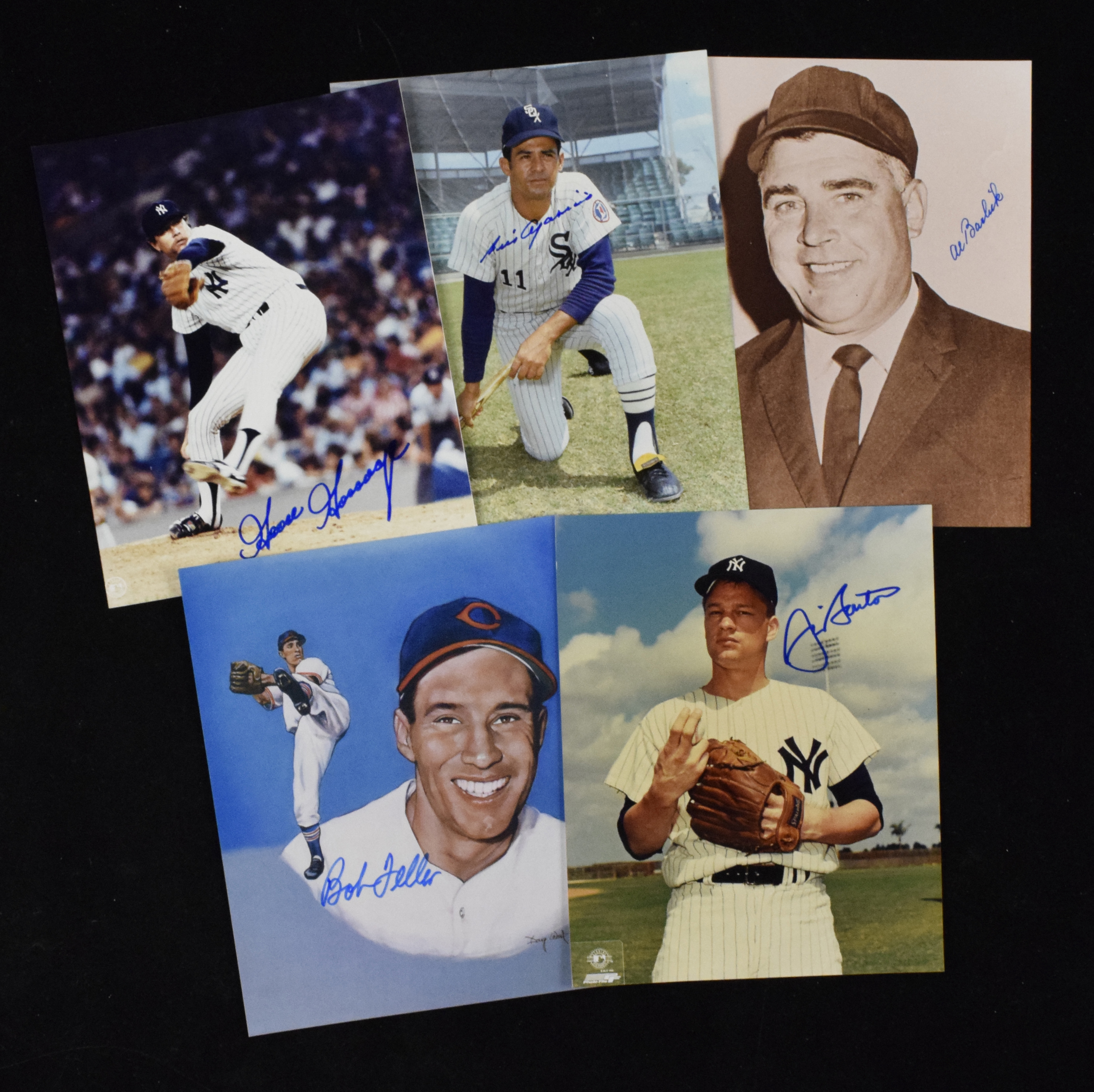 Description:Lot of (25) autographed 8"x10" photos, including many Yankees players (Sigs. NM/MT-MT). Nice assortment of 8"x10" photos, each of which has been signed in marker on the front. Photos are signed by Al Barlick, Bob Feller, Luis Aparicio, Spec Shea, (2) Andy Fox, Joe Pignatano, Jim Bouton, Jim Wynn, Rollie Sheldon, Fritz Peterson, Jerry Lumpe, Hector Lopez, Phil Linz, Johnny Kucks, Tommy Henrich, Goose Gossage, (2) Jake Gibbs, Billy Gardner and Oscar Gamble, Johnny Blanchard, Rick Cerone, Dave LaPoint and Hal Reniff. Signatures rate 8/9 out of 10, and photos range EX/MT-NM.