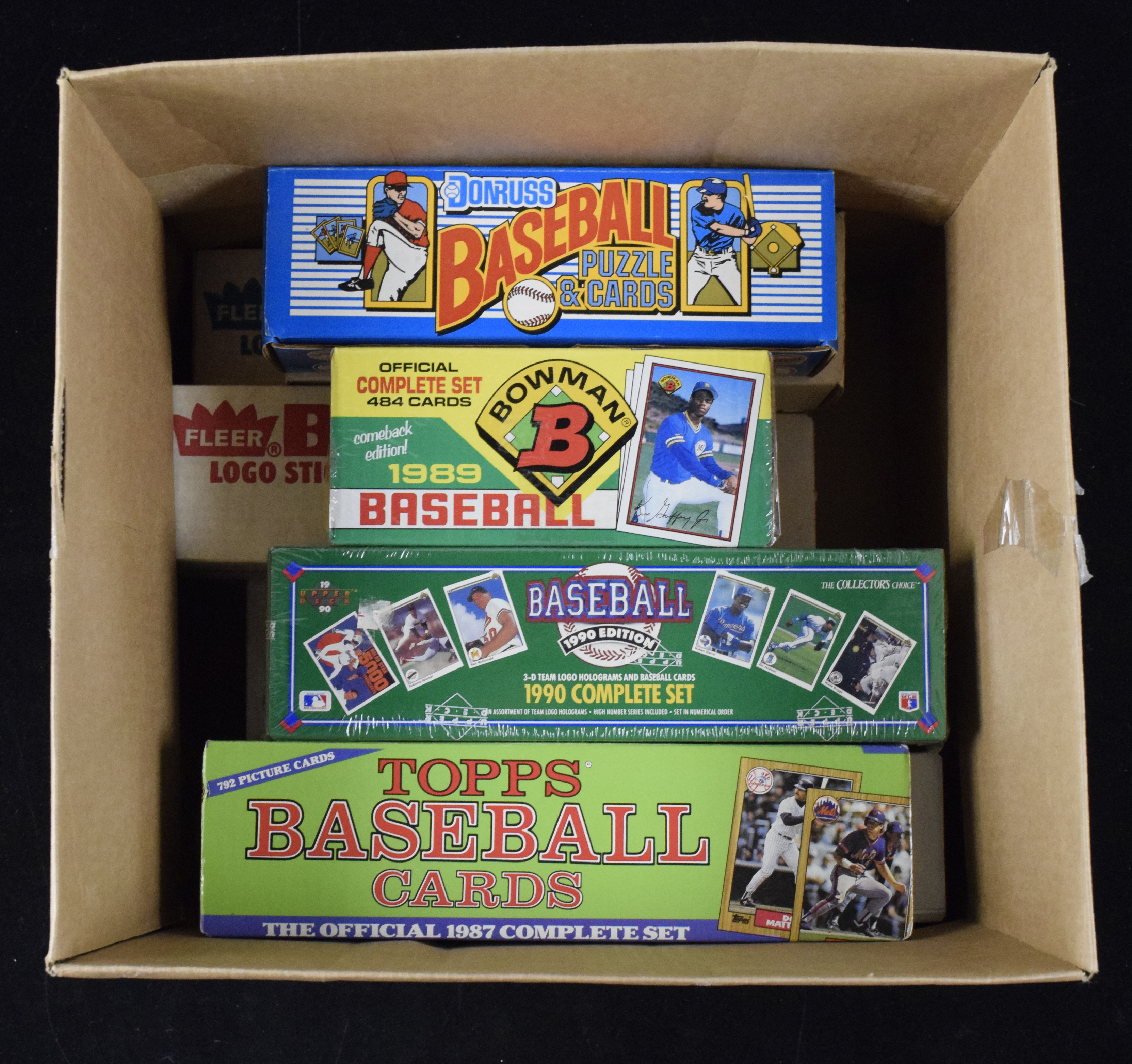 Description:*Lot of (12) 1987-1991 Topps, Donruss, Fleer and Upper Deck complete sets, including factory (NM-NM/MT). Lot includes (2) 1987 Topps open factory sets; (1) 1989 Bowman factory-sealed set; (1) 1989 Topps hand-collated set; (1) 1989 Fleer factory set (seal intact); (1) 1989 Donruss factory set (cards in sealed blocks); (1) 1990 Upper Deck factory-sealed set; (1) 1990 Donruss factory set (cards in sealed blocks); (1) 1990 Donruss hand-collated set; (2) 1990 Upper Deck hand-collated sets and (1) 1991 Donruss open factory set. Sets appear complete but have not been checked card by card. Cards/set boxes appear NM-NM/MT or better.