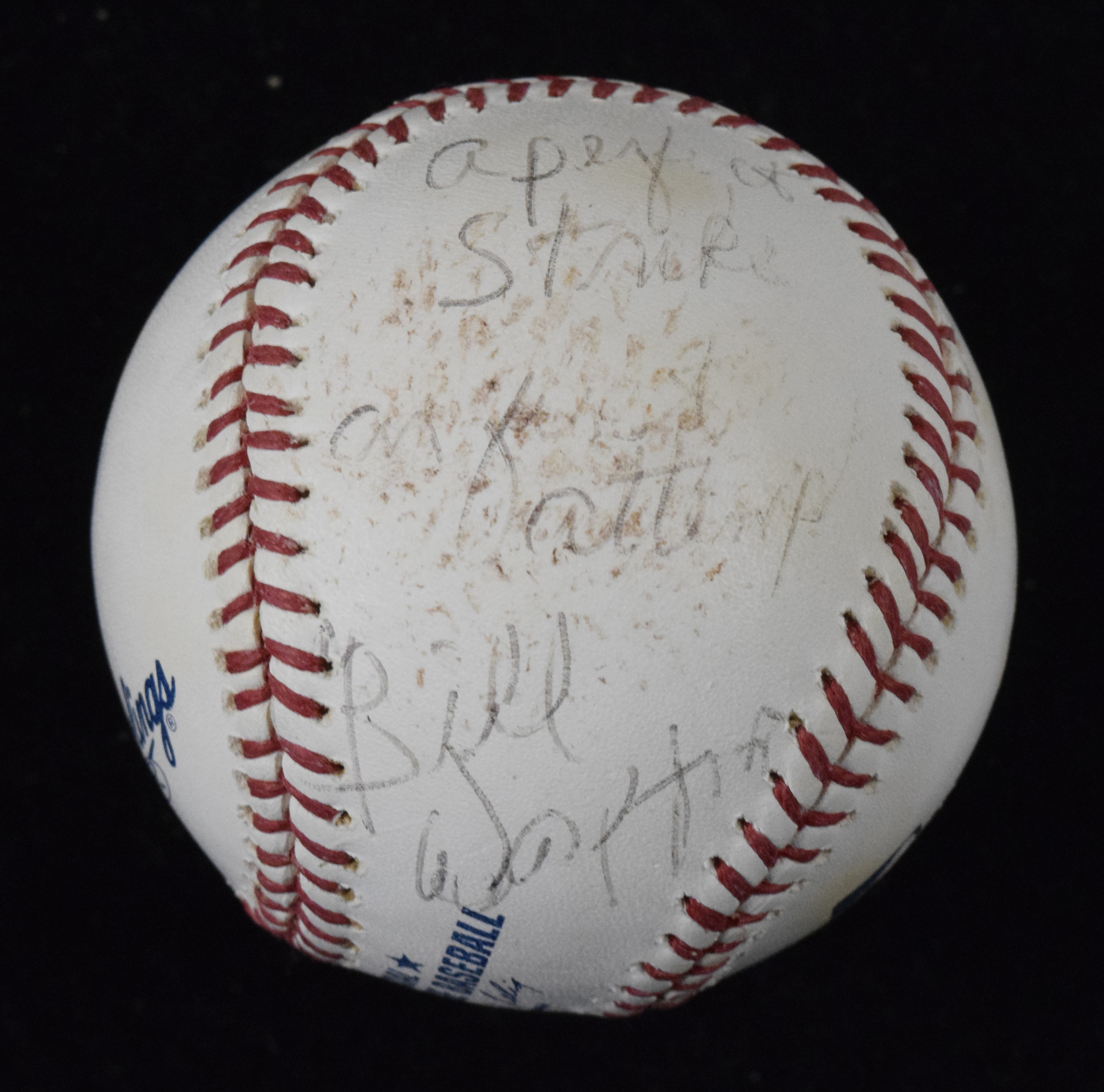 Description:Bill Walton signed & inscribed 2013 San Francisco Giants ceremonial 1st pitch baseball (EX). B.Selig ML ball signed by Walton in black ink with "A perfect strike on first attempt" "Aug 5, 2013 Giants/Brewers" "SF Giants / GD" inscriptions (Grateful Dead Tribute Night). Signature rates 7 out of 10. Scuff mark on signed panel likely from hitting the dirt. Includes certificate of provenance from Walton Family: EX