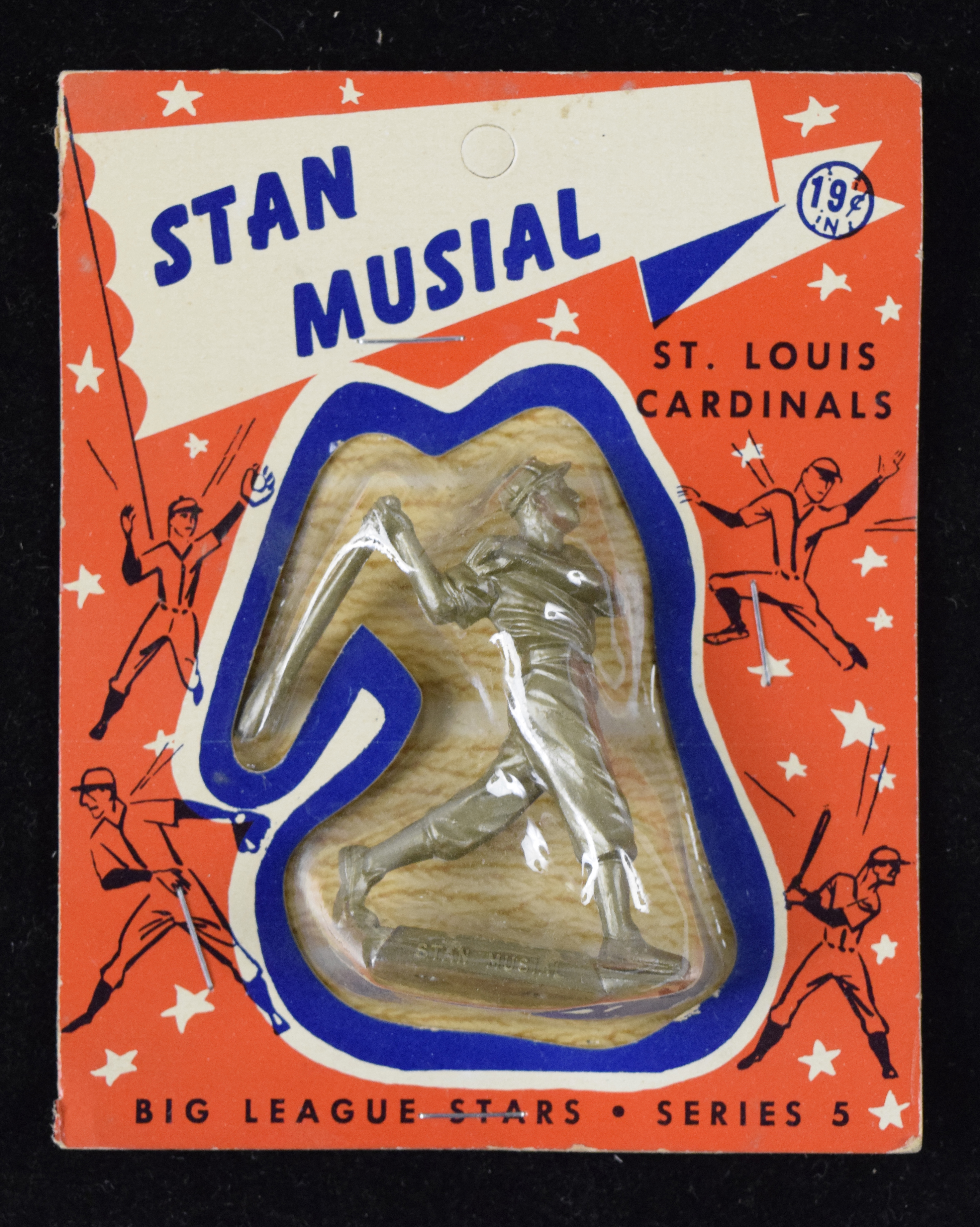 Description:1956 Stan Musial Big League Stars statue in original package (See description) Desirable piece in original package which shows some modest general handling and storage wear. What appear to be more recent staples (4) were added to seal the package as the glue commonly dries out: See description
