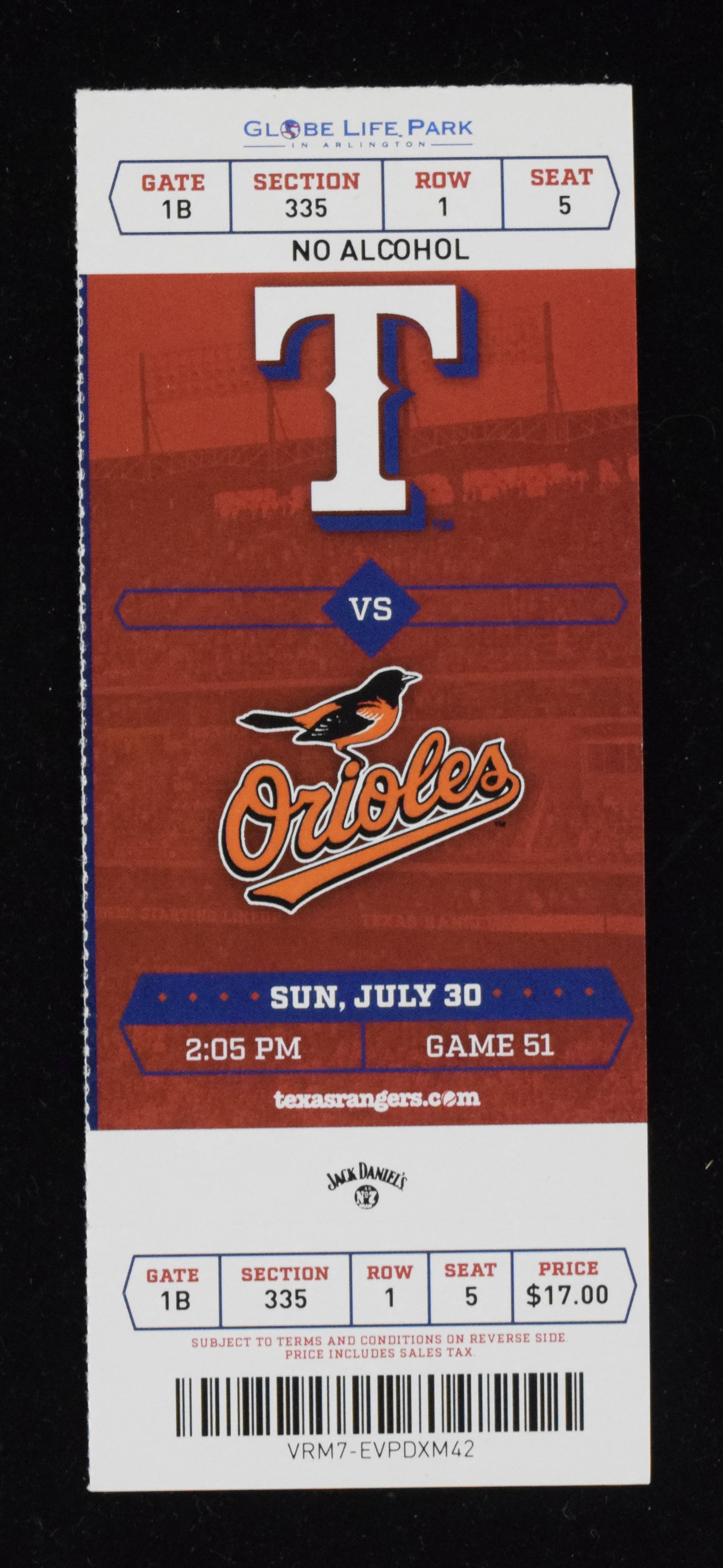 July 30, 2017 Adrian Beltre 3,000th hit full ticket (season ticket) (NM) Season ticket holder variety in outstanding condition: NM