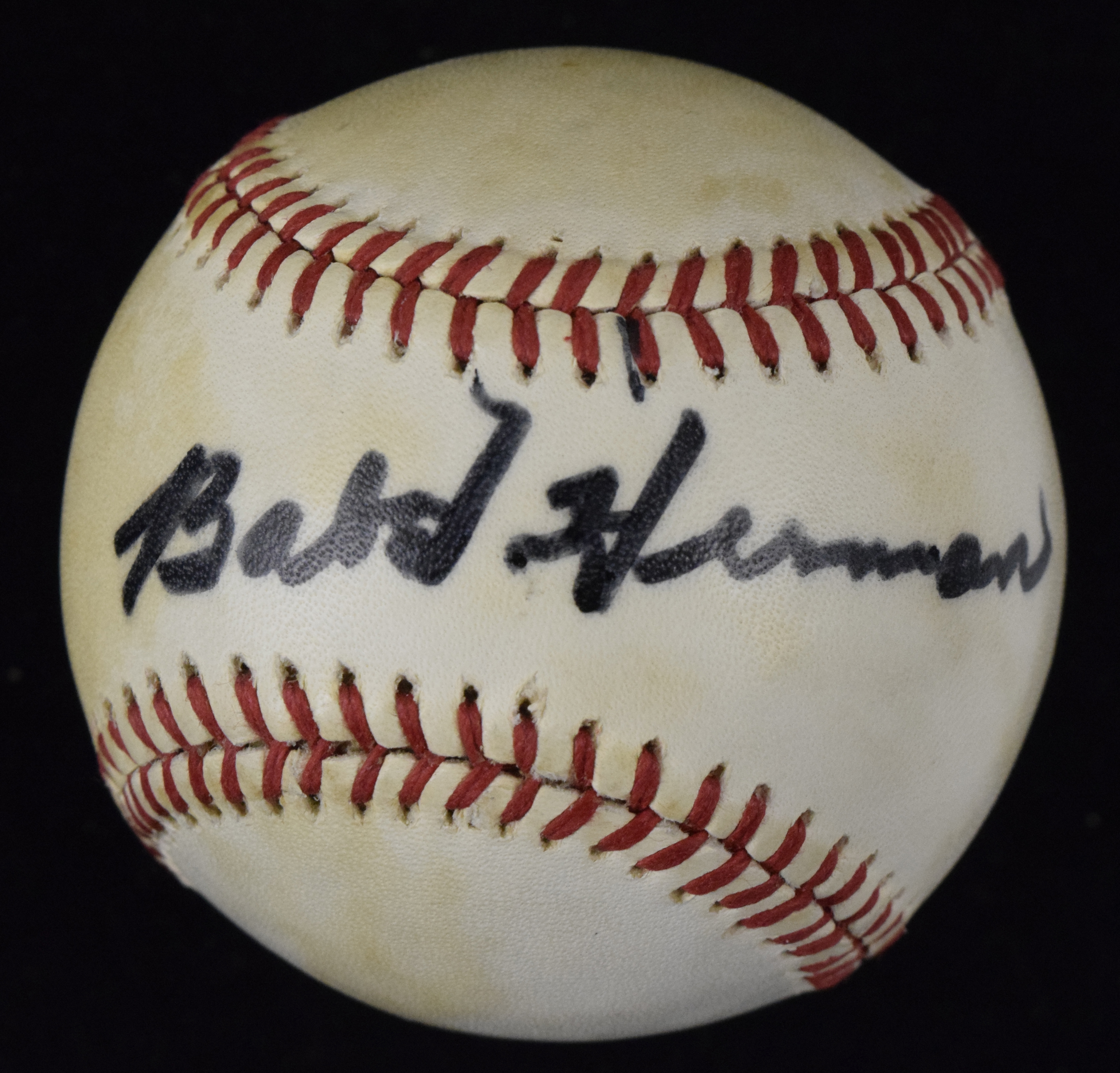 Description:Babe Herman signed C.Feeney NL baseball - JSA (VG/EX). Herman signed the sweet spot in black marker. Signature rates 8/9 out of 10. Includes a previous auction LOA from JSA. Areas of toning on each panel: VG/EX