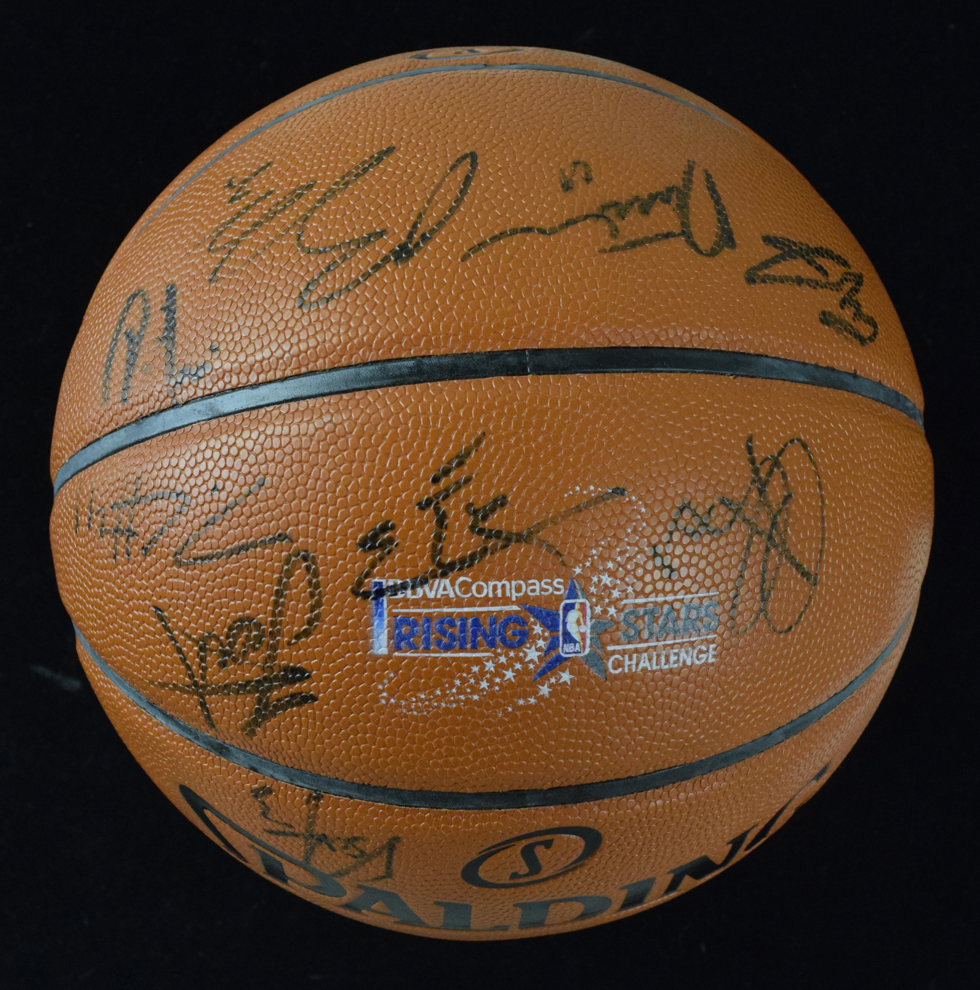 Description:2016 NBA Rising Stars multi-signed basketball with Jokic (NM). Spalding NBA Game Ball Series ball signed by (20) including Nikola Jokic, Karl-Anthony Towns, Marcus Smart, Kristaps Porzingis, and others. Signatures rate 7 to 9/10 (avg 8) out of 10: NM