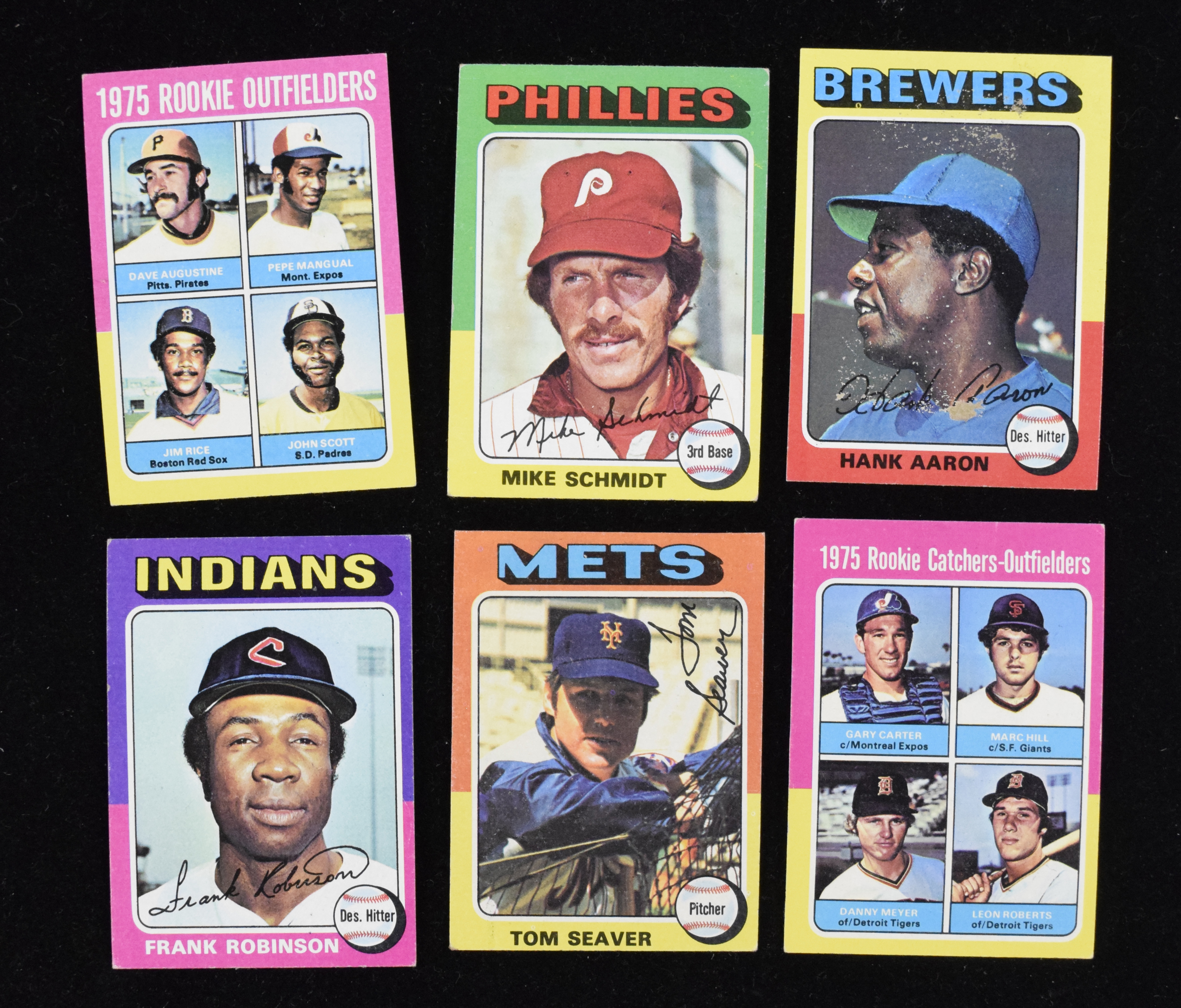 Description:Lot of (850+) 1975 Topps Mini cards with HOFers and RCs (PR-EX/MT). Outstanding quantity (with duplication) of 1975 Topps Mini card is highlighted by numerous stars, Hall of Famers and rookie cards, as well as MVP cards, Highlights and League Leaders. Highlights include #s 1 Hank Aaron HL, (2) 5 Nolan Ryan HL, 61 Dave Winfield, 70 Mike Schmidt, 80 Carlton Fisk, 100 Willie Stargell, (2) 185 Steve Carlton, 200 Mickey Mantle MVP, 260 Carl Yastrzemski, (2) 370 Tom Seaver, 540 Lou Brock, (2) 600 Rod Carew, (3) 580 Frank Robinson, (3) 623 Keith Hernandez RC, 620 Gary Carter RC, 616 Jim Rice RC, 660 Hank Aaron and more. Most cards appear VG/EX-EX with some better and some worse. Range: PR-EX/MT.